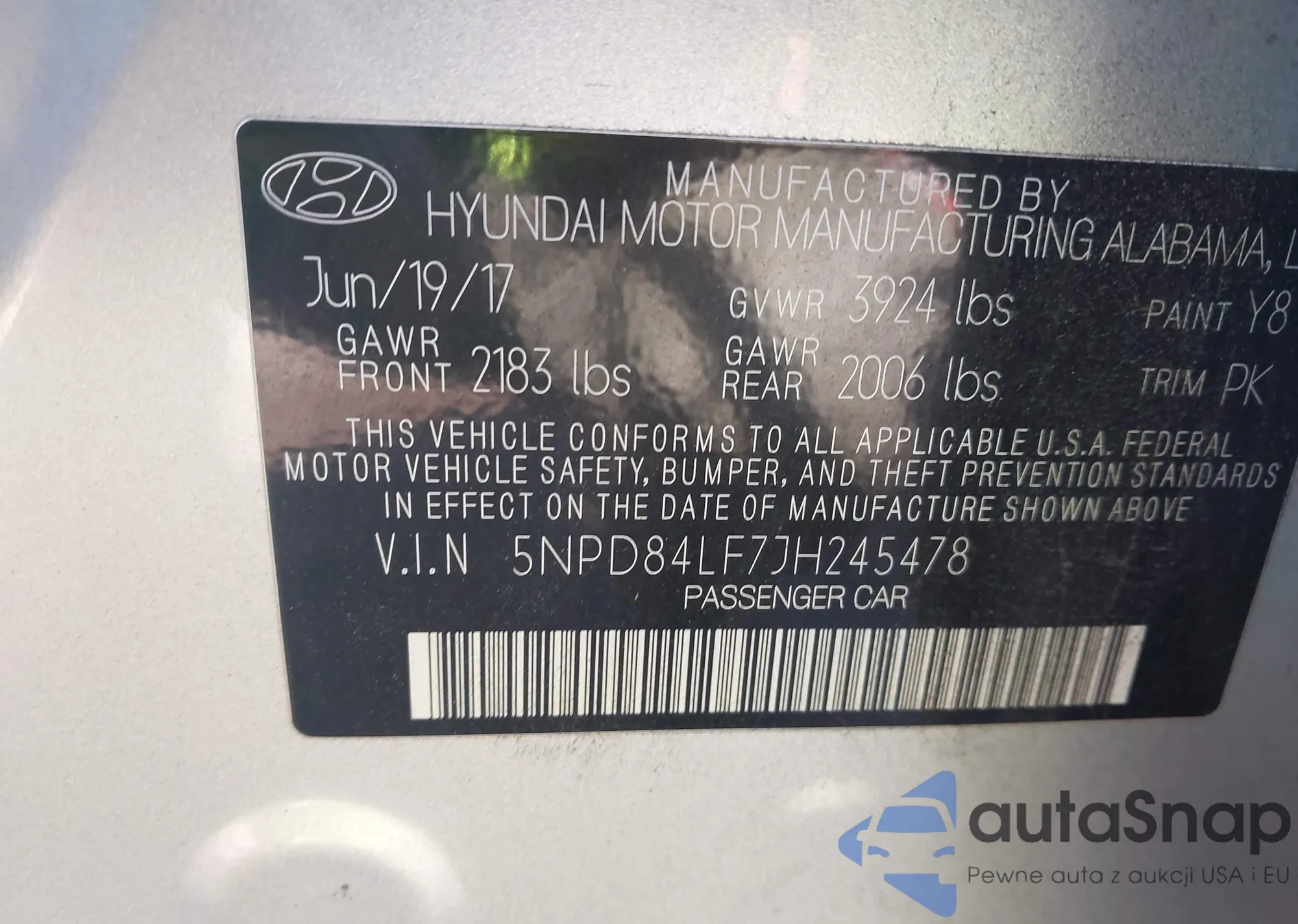 • VIN 5TDYZ3DC0HS886182