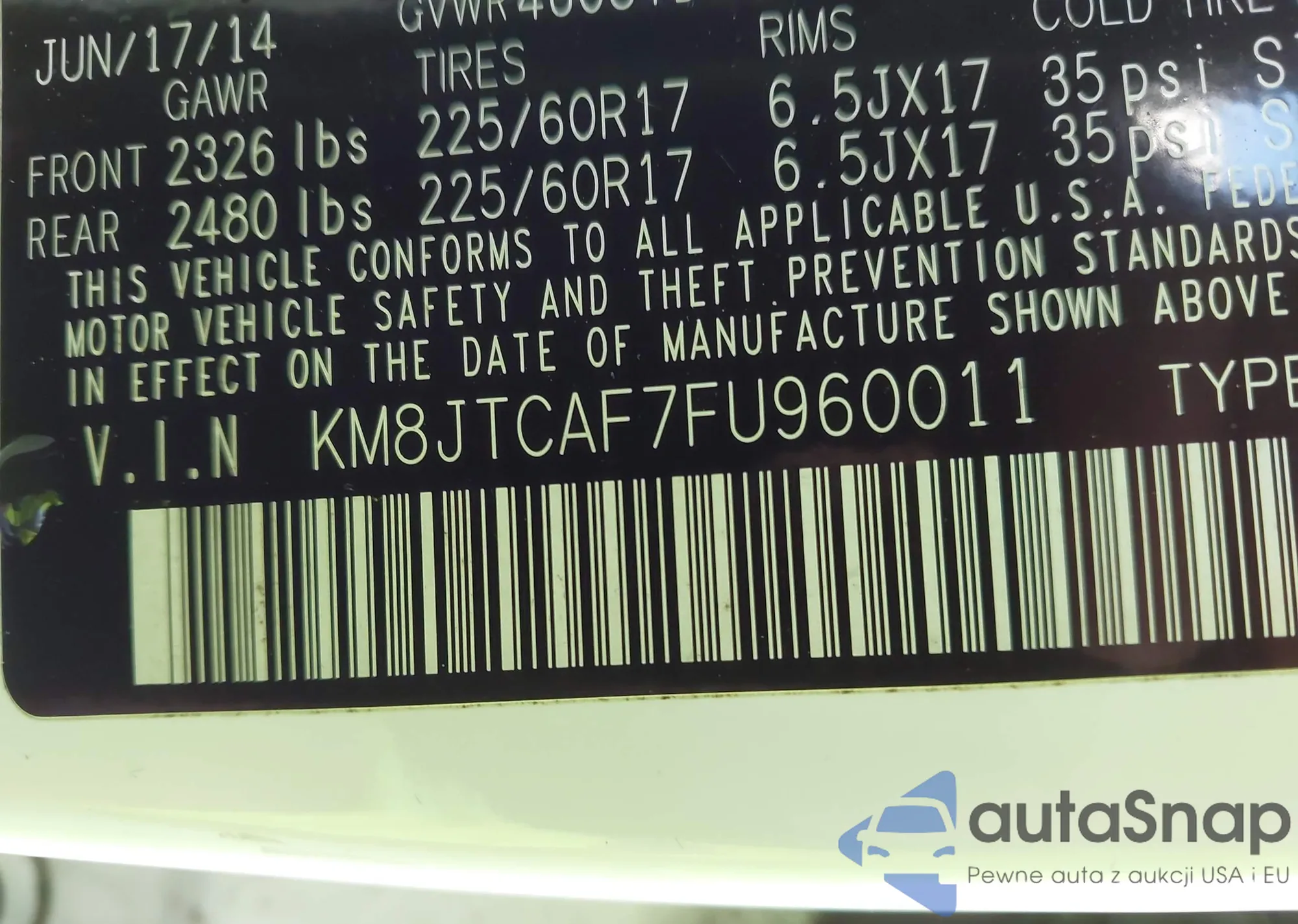• VIN KM8JTCAF7FU960011