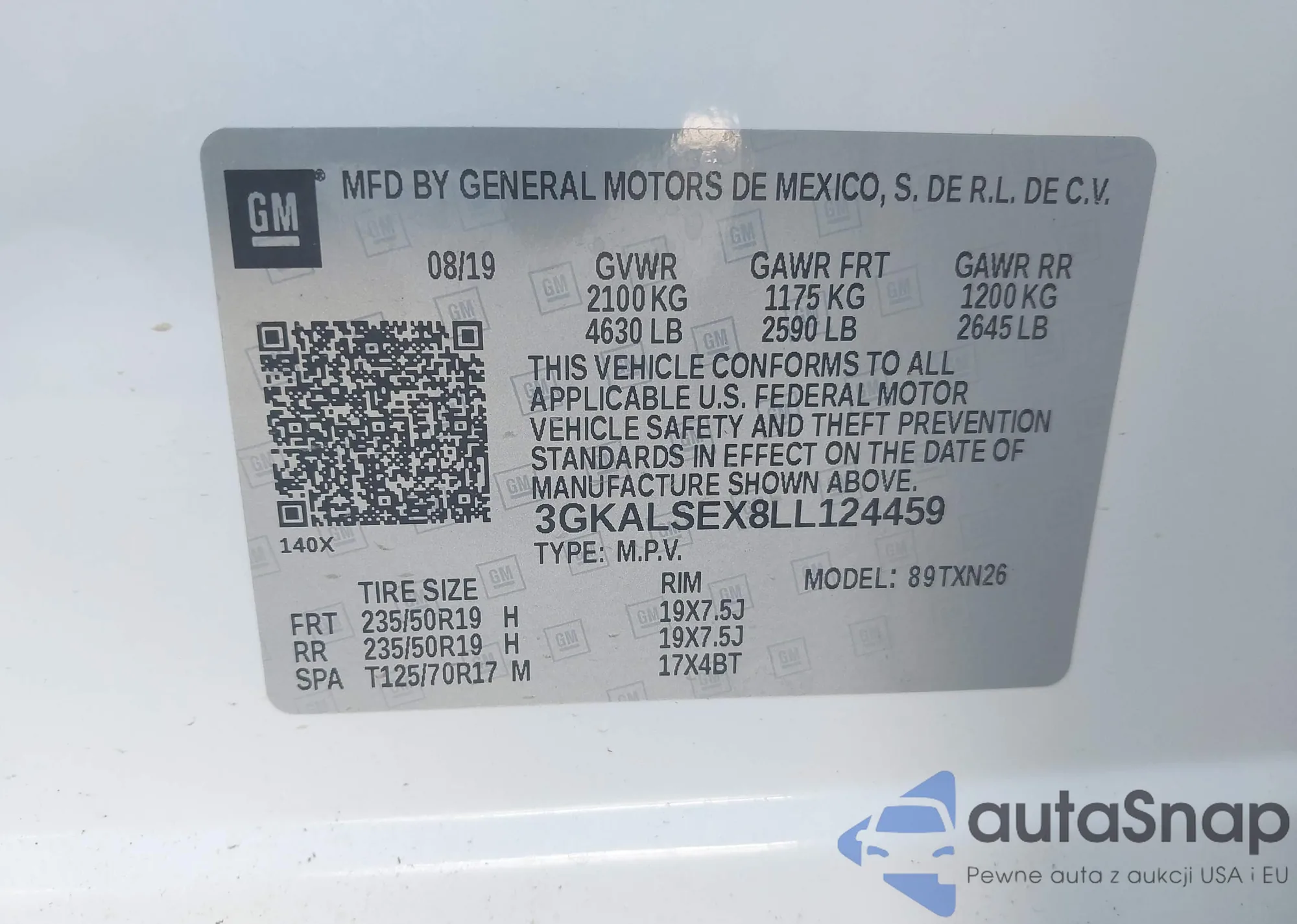 LOT: 43318130 VIN: 3GKALSEX8LL124459