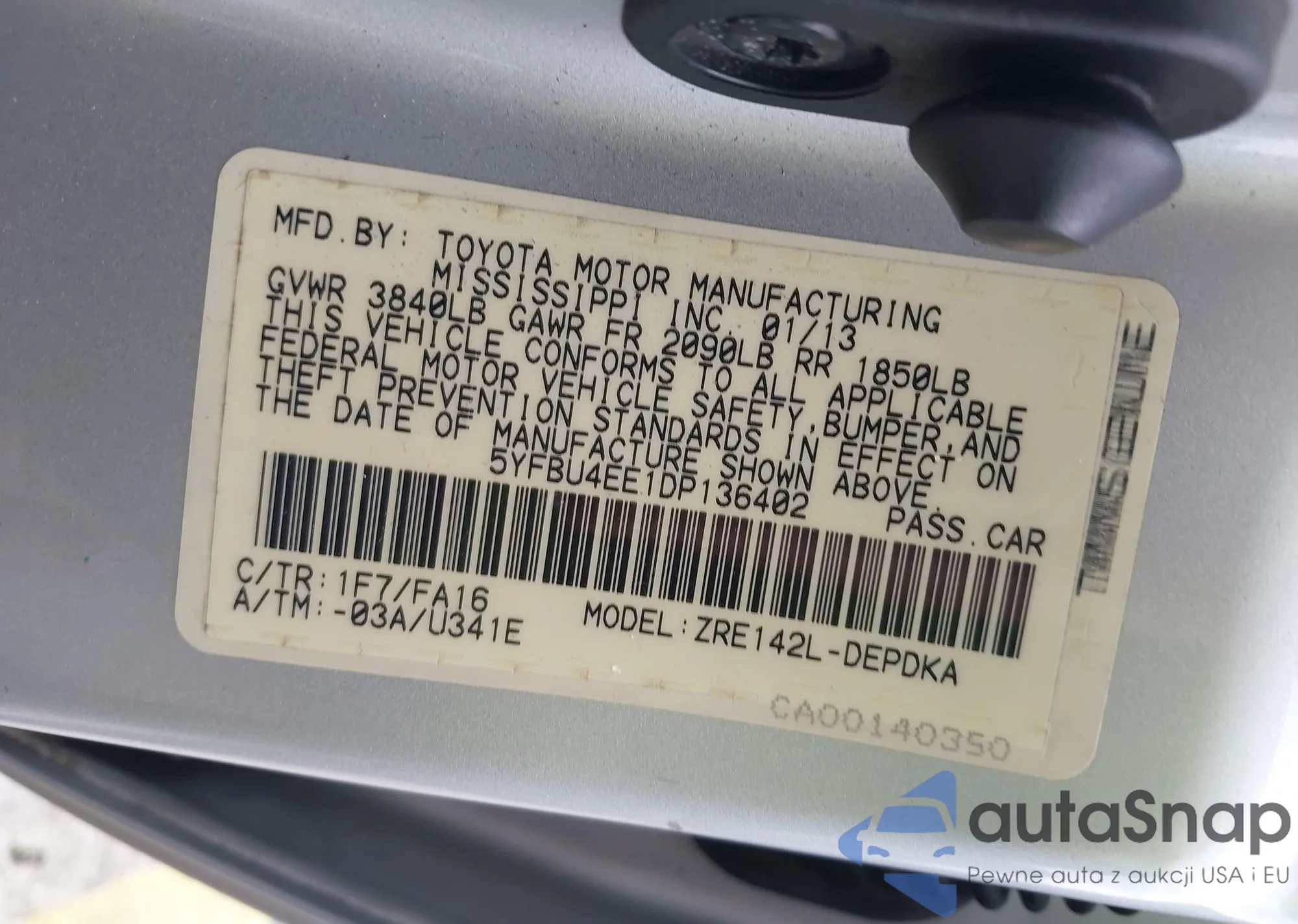 • VIN 5YFBU4EE1DP136402