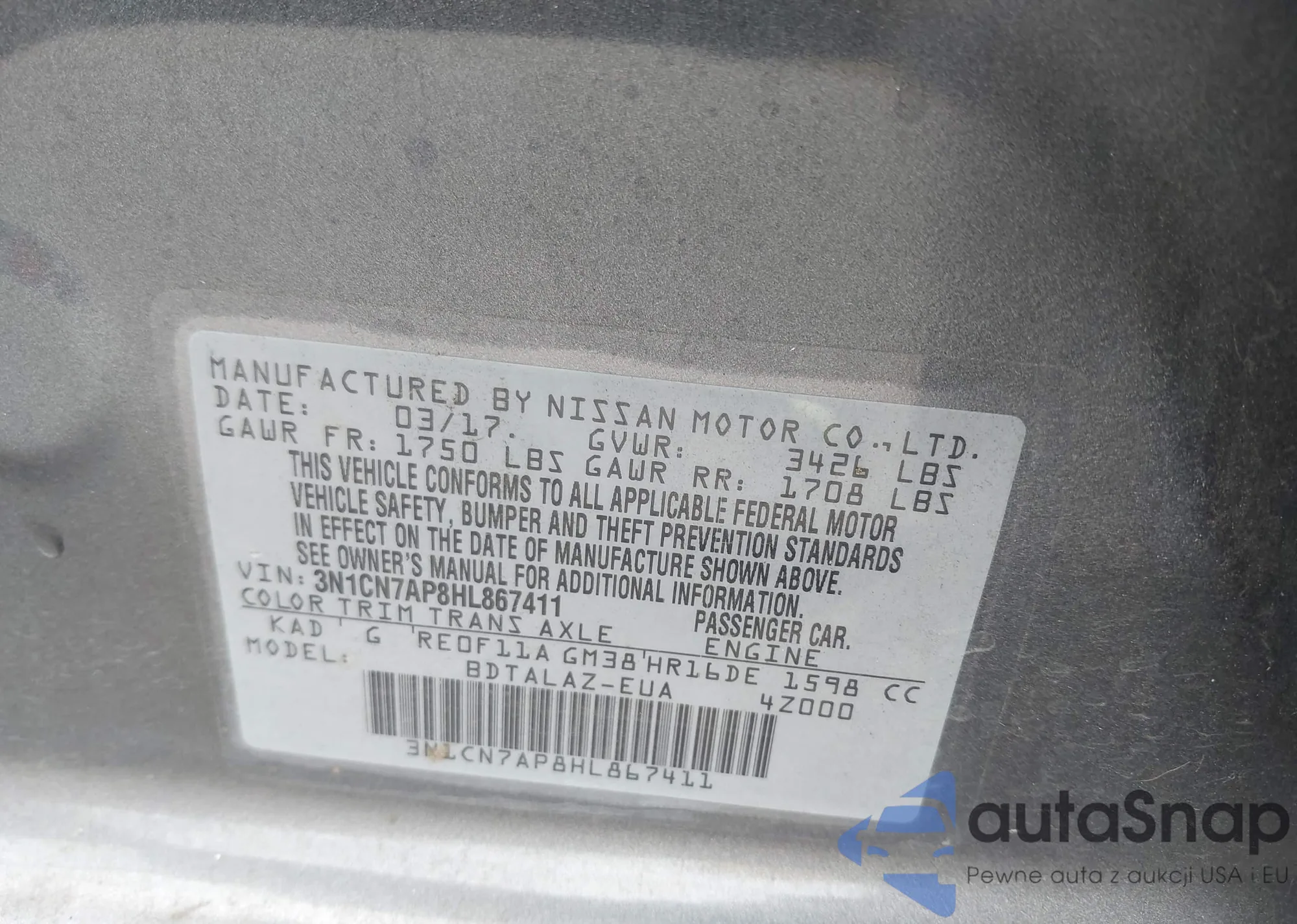 • VIN 3FAHP0HA7AR371904