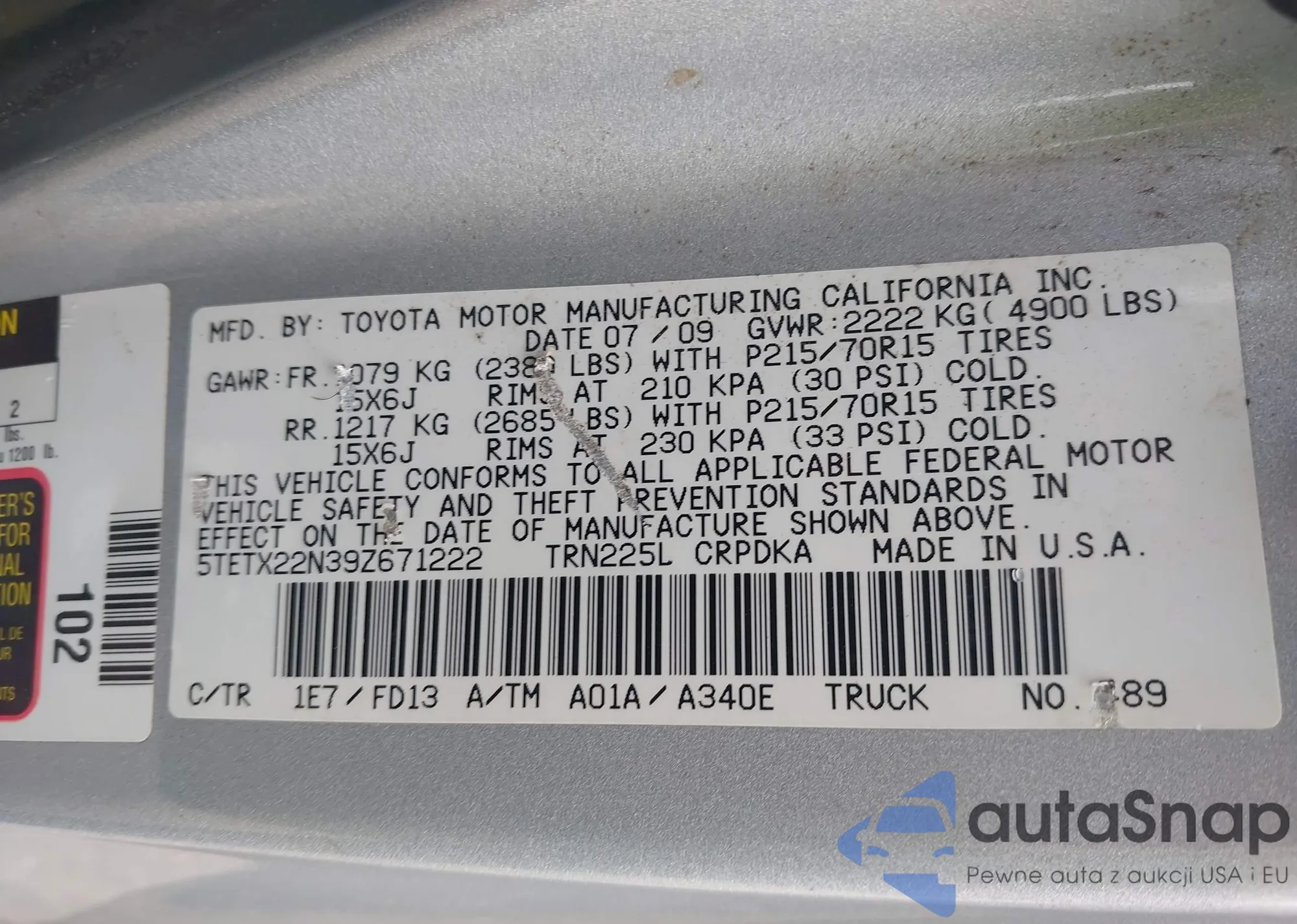 • VIN 5TETX22N39Z671222