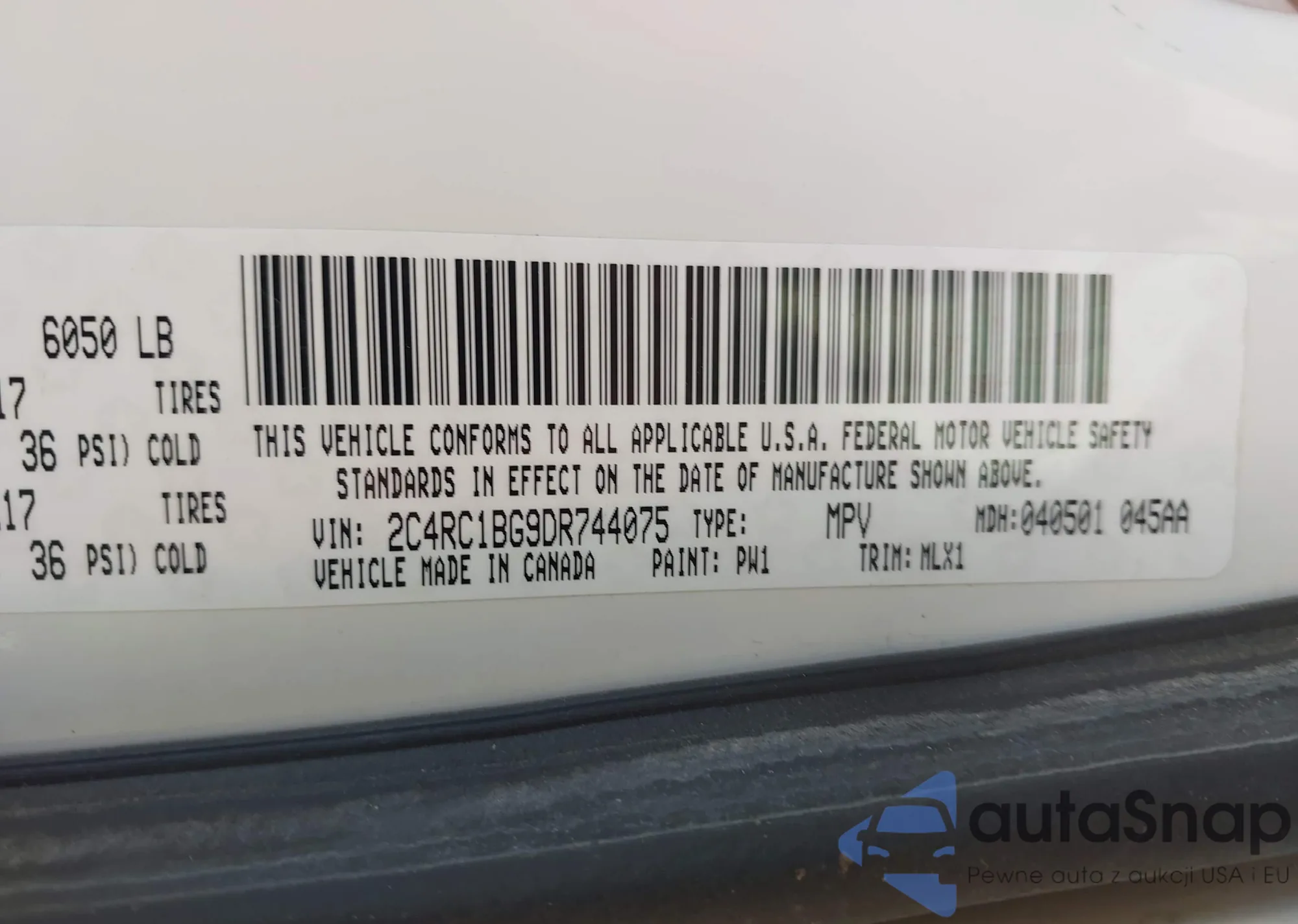 • VIN 2C4RC1BG9DR744075