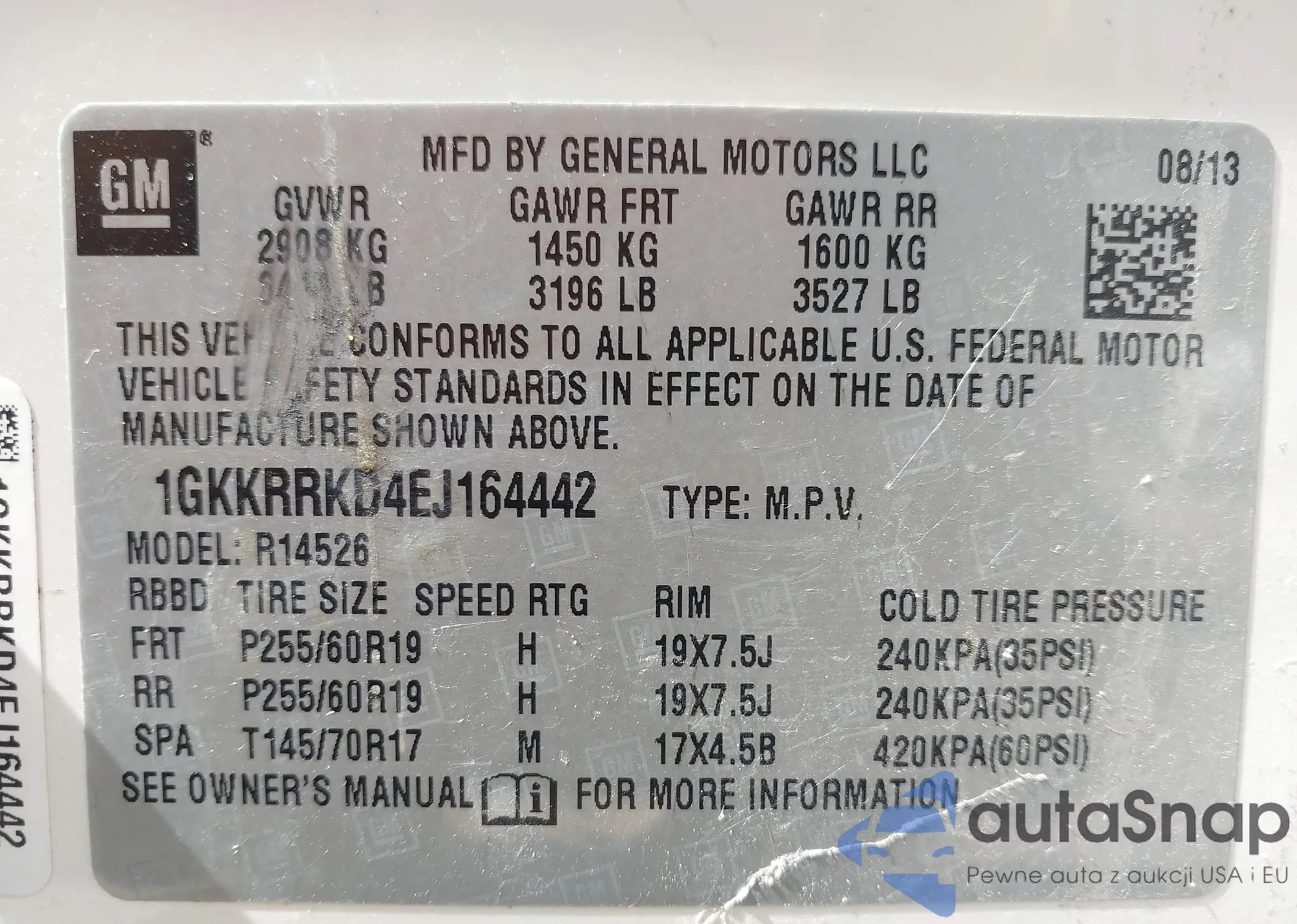 LOT: 43319046 VIN: 1GKKRRKD4EJ164442