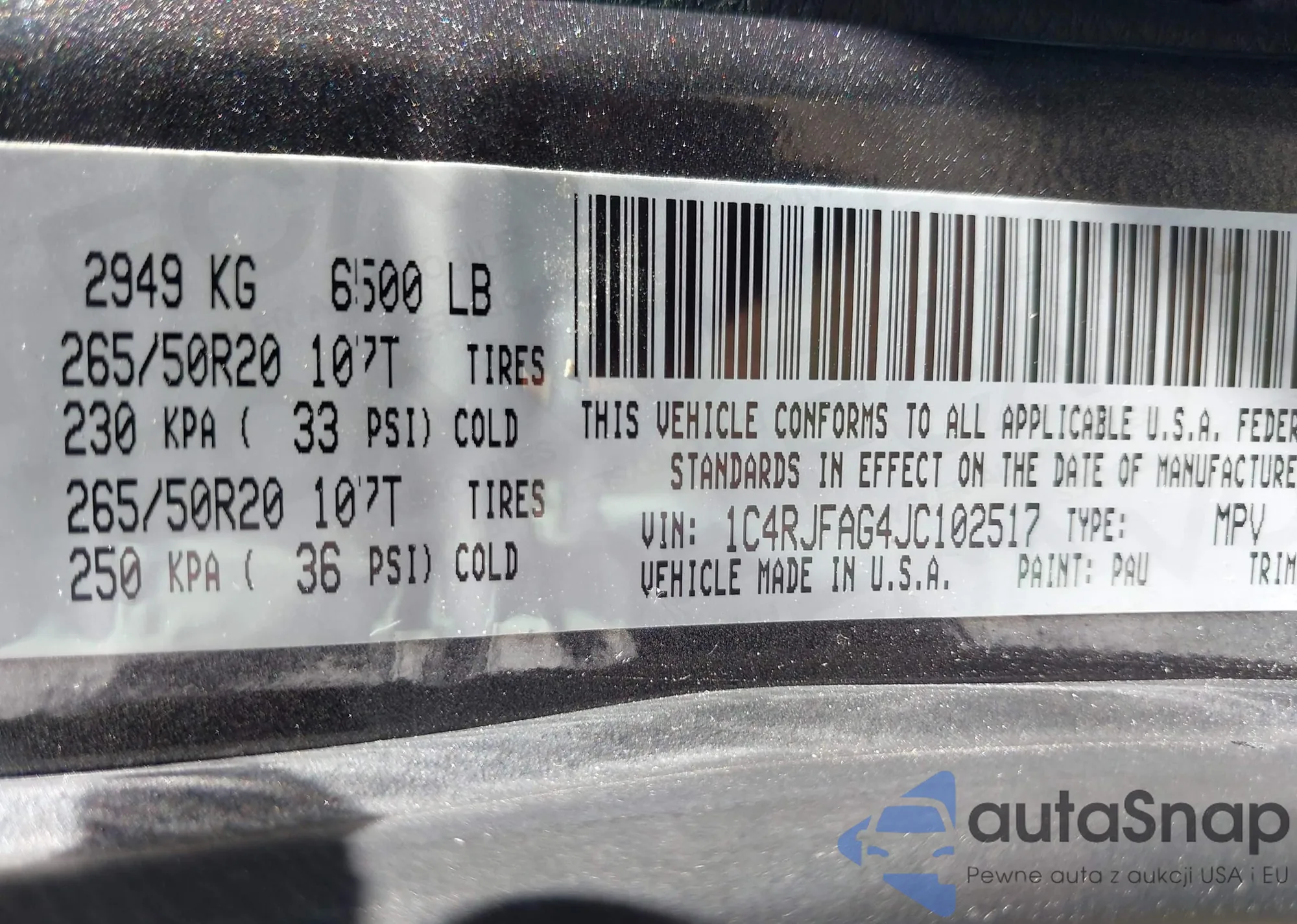 • VIN 1C4RJFAG4JC102517