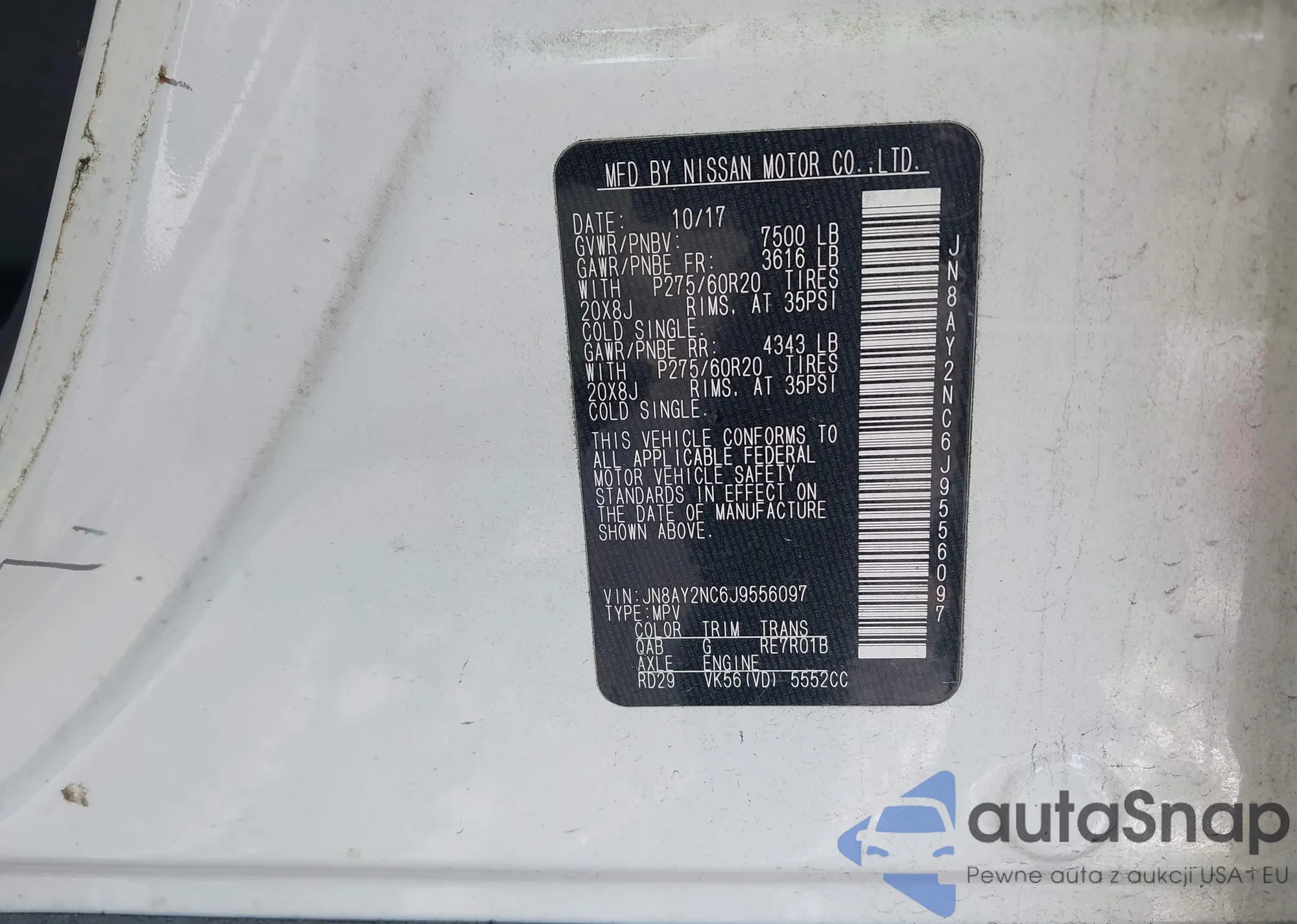 • VIN JN8AF5MR7CT110320