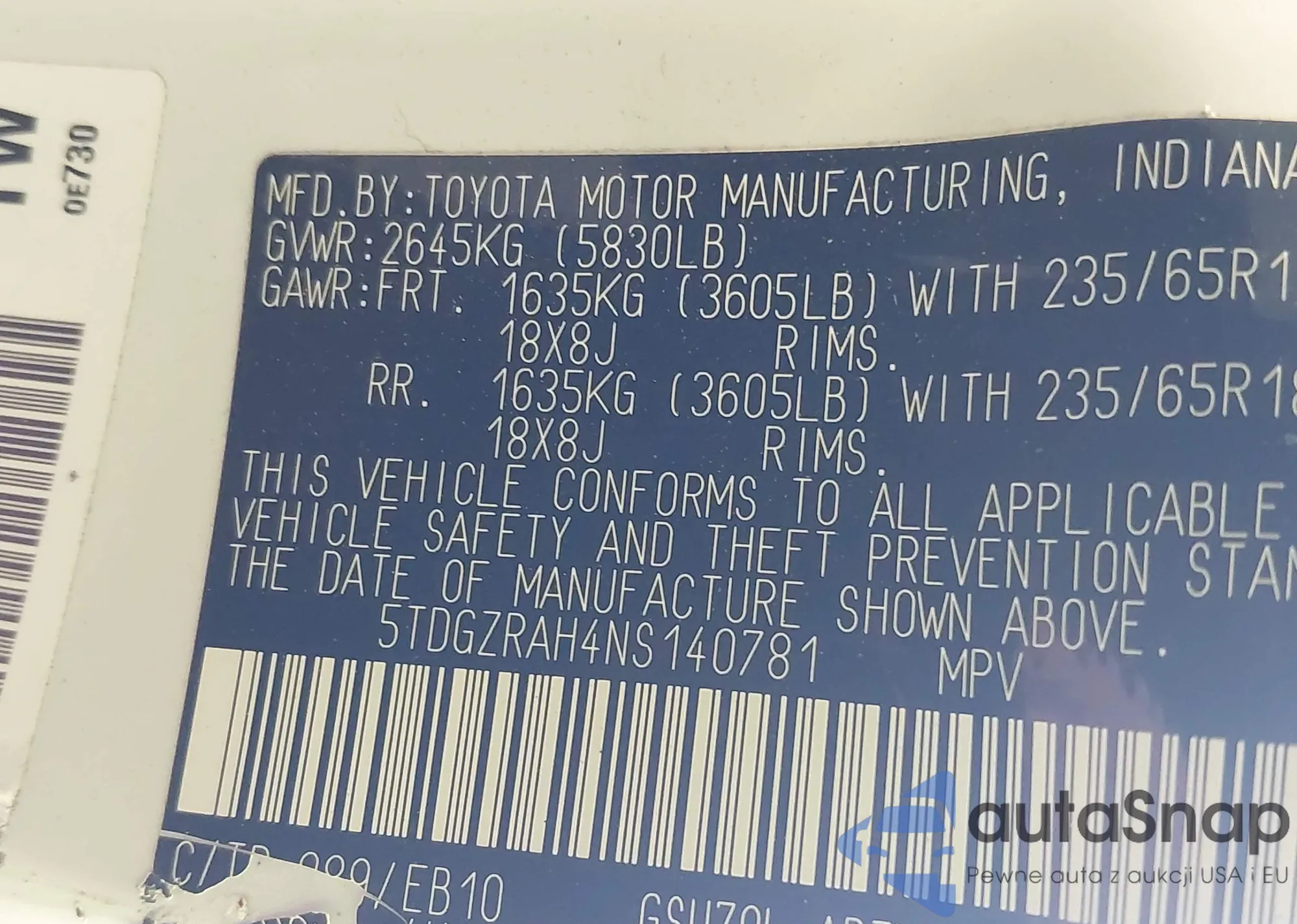 LOT: 43441685 VIN: 5TDHBRCH0LS512653