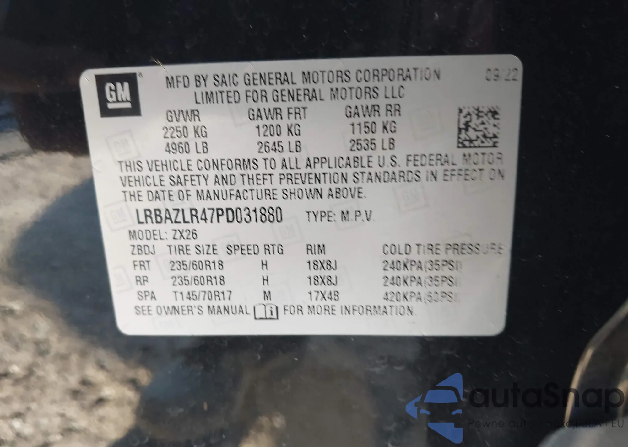 • VIN LRBAZLR47PD031880