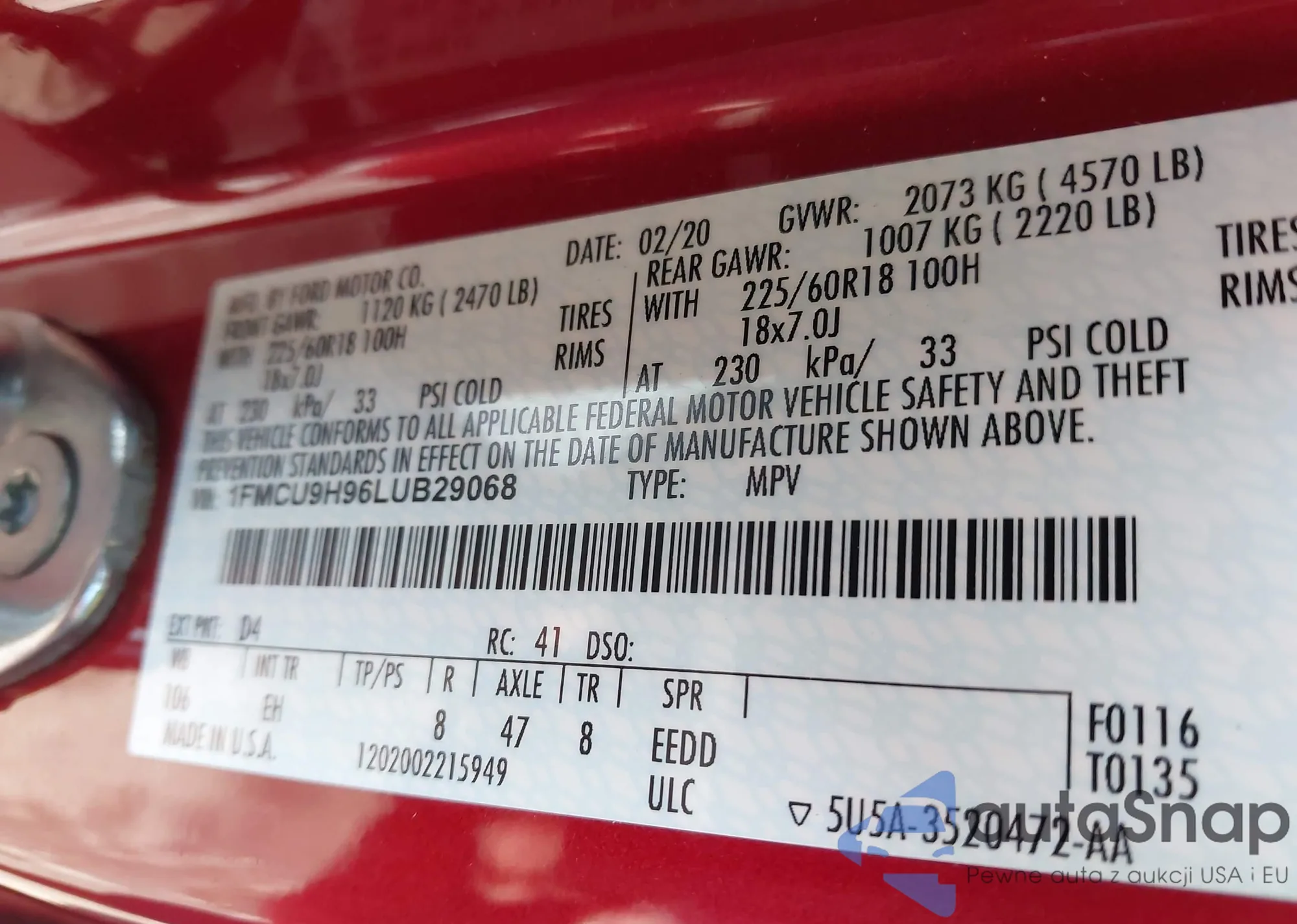 • VIN 1FMCU9H96LUB29068