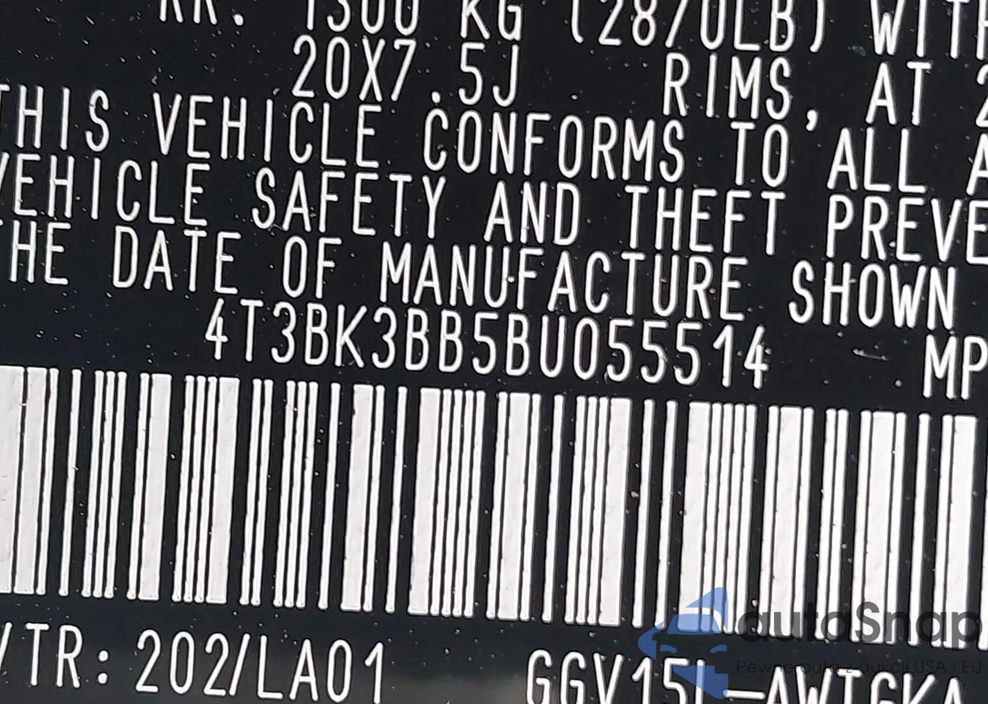 • VIN 58ABK1GG8JU089102