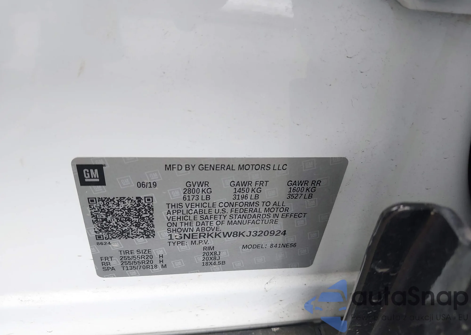 LOT: 43300658 VIN: 1GNERKKW8KJ320924