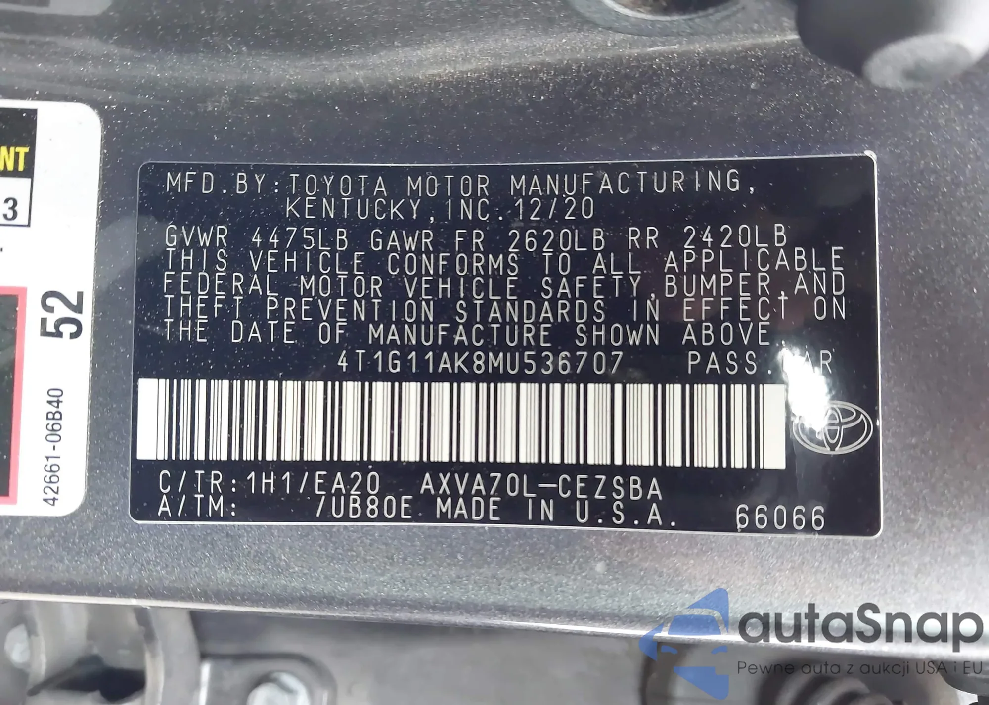LOT: 43329430 VIN: 4T1G11AK8MU536707