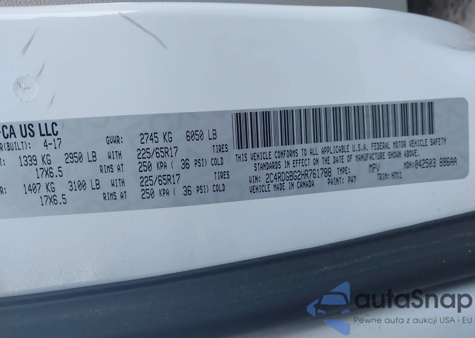 • VIN 2C4RDGBG2HR761788