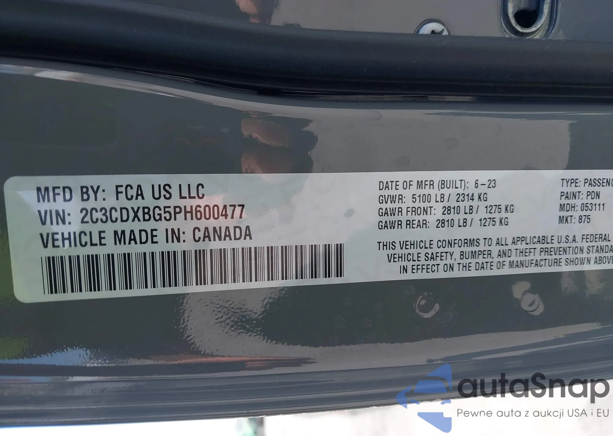 • VIN 2C3CDXBG5P8600477