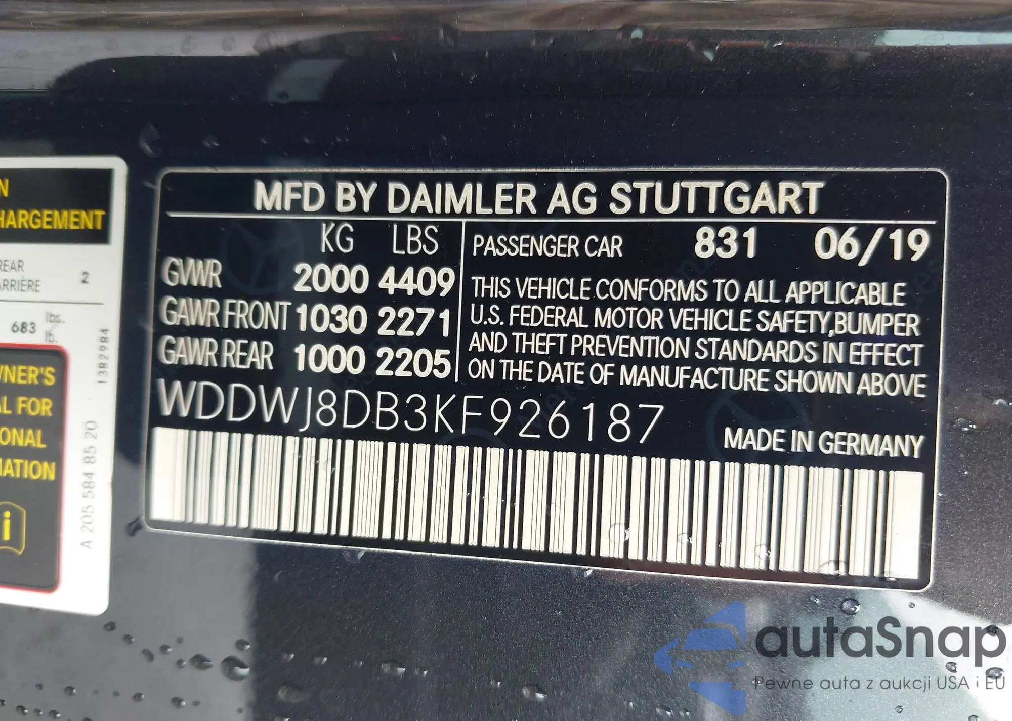 LOT: 42811815 VIN: WDDWJ8DB3KF926187