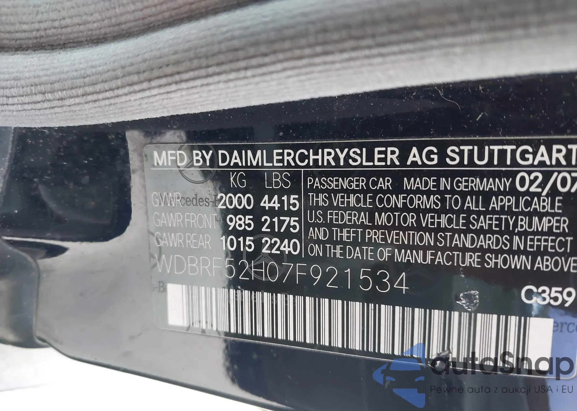 LOT: 43325980 VIN: WDBUF65J83A264259