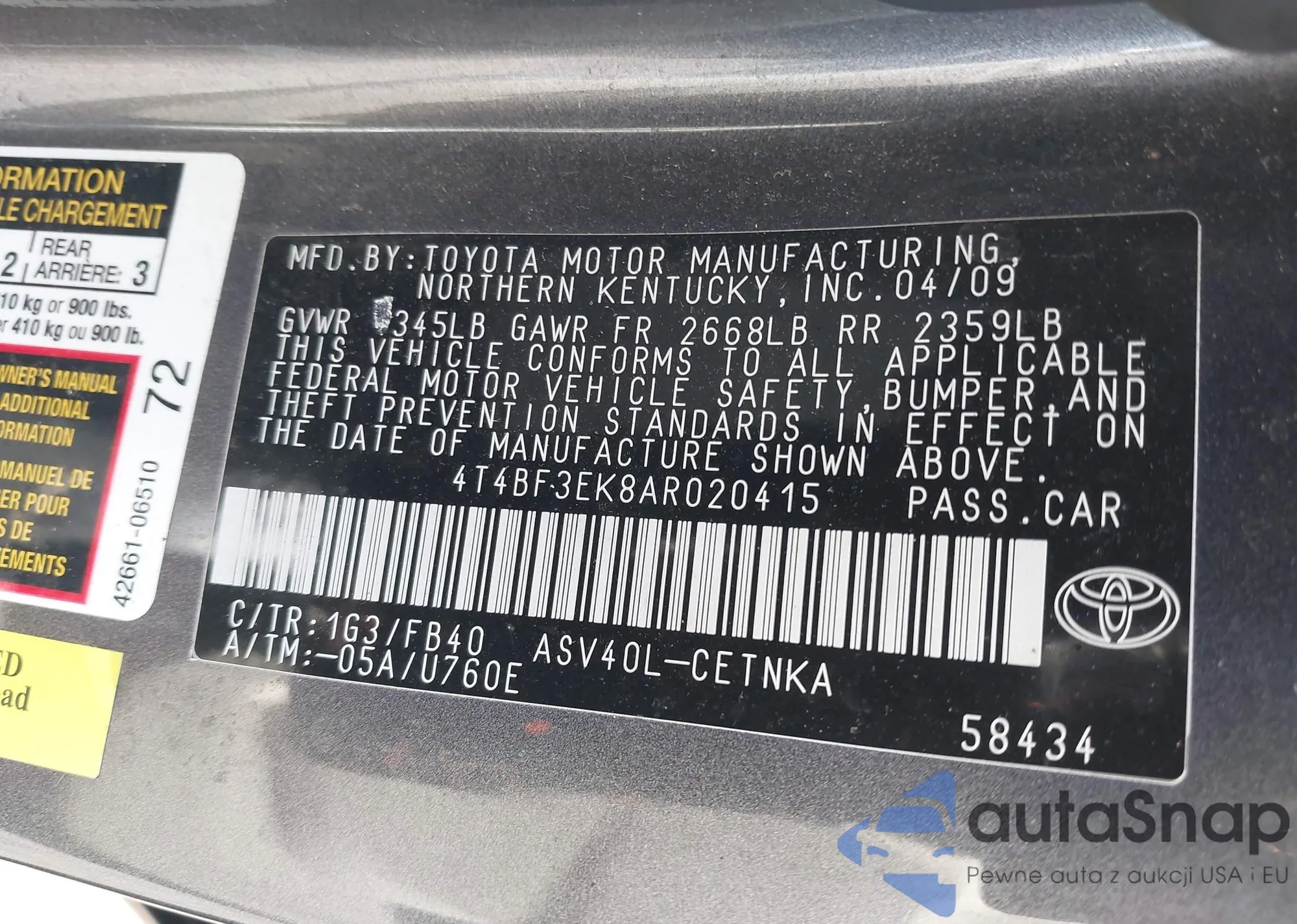 • VIN 4T4BF3EK8AR020415