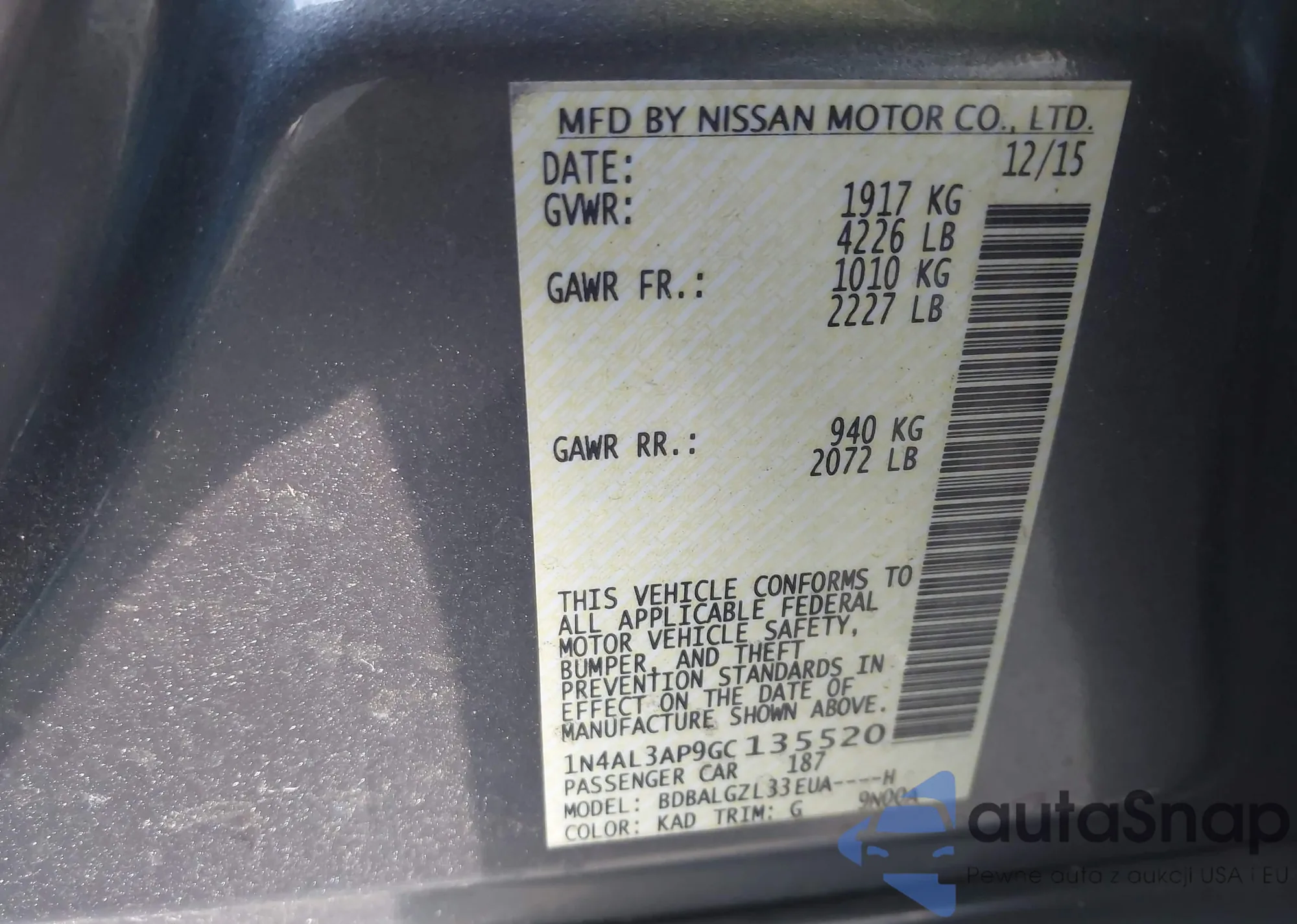 • VIN 1N4AL3AP9GC135520