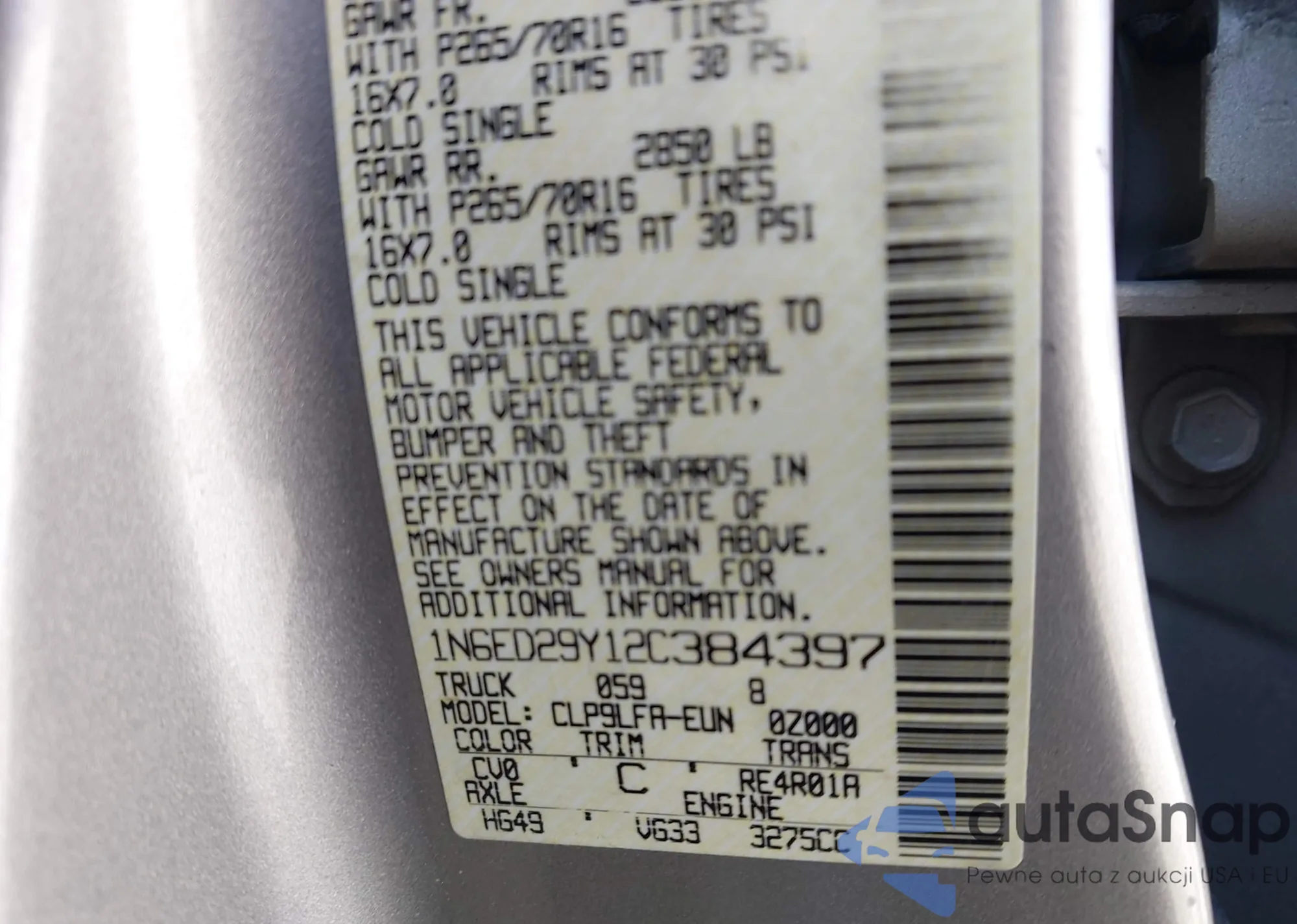 • VIN 1N6ED29Y12C384397