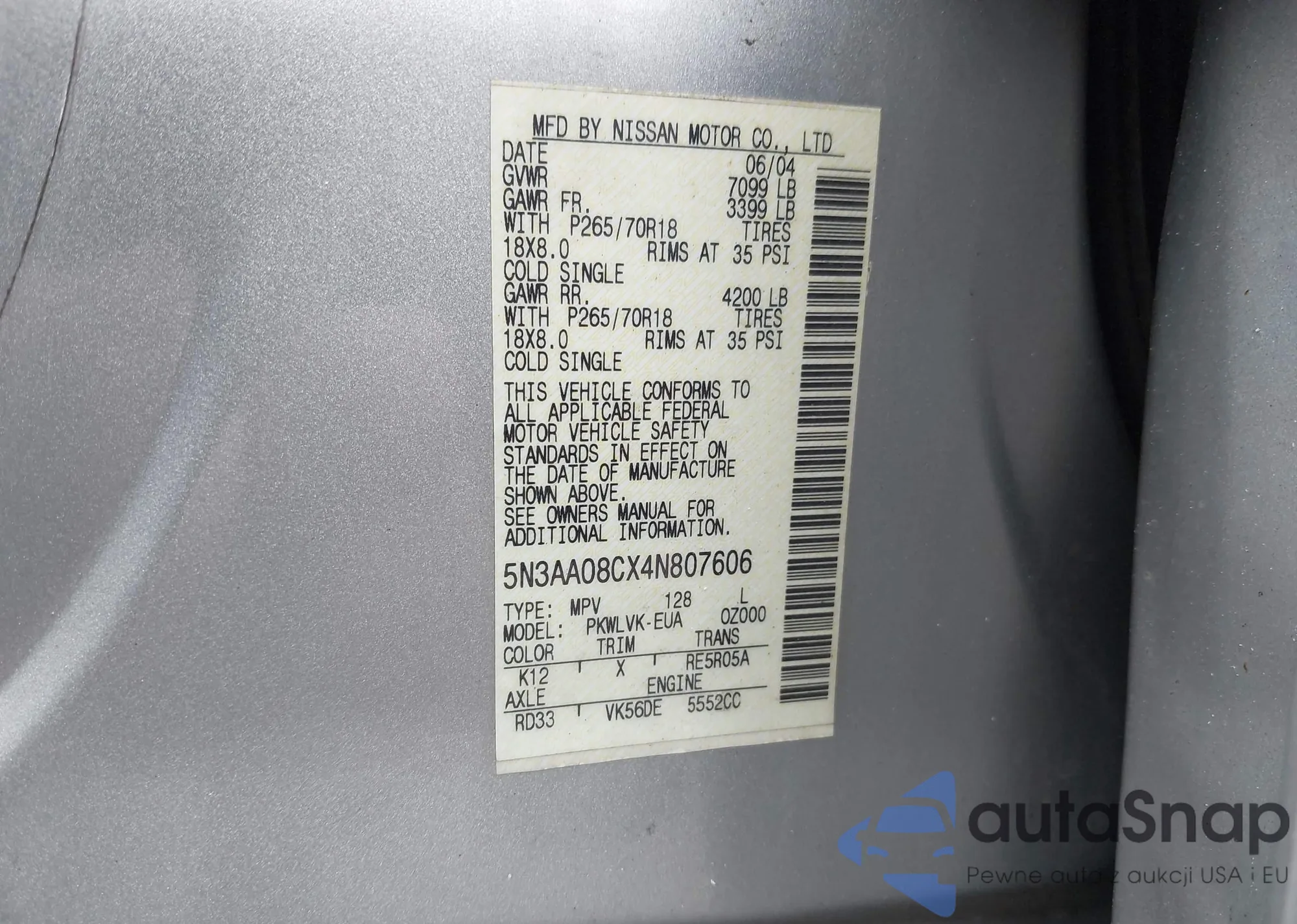 • VIN 1D7HW42NX5S134596