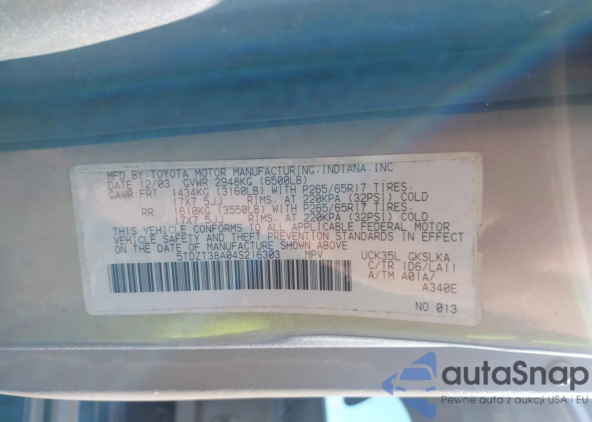 • VIN 4T1BE30K03U172471
