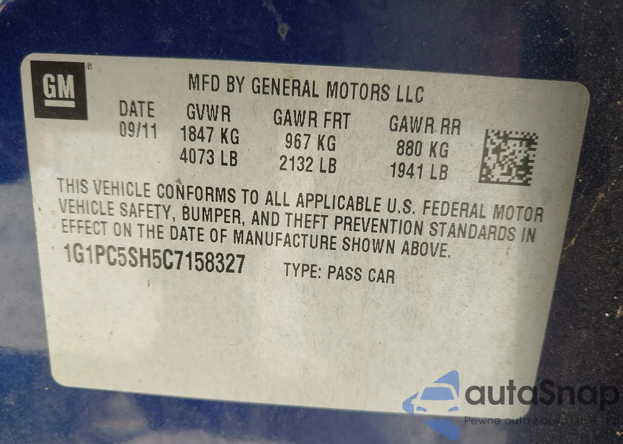 • VIN 1G1PC5SH5C7158327