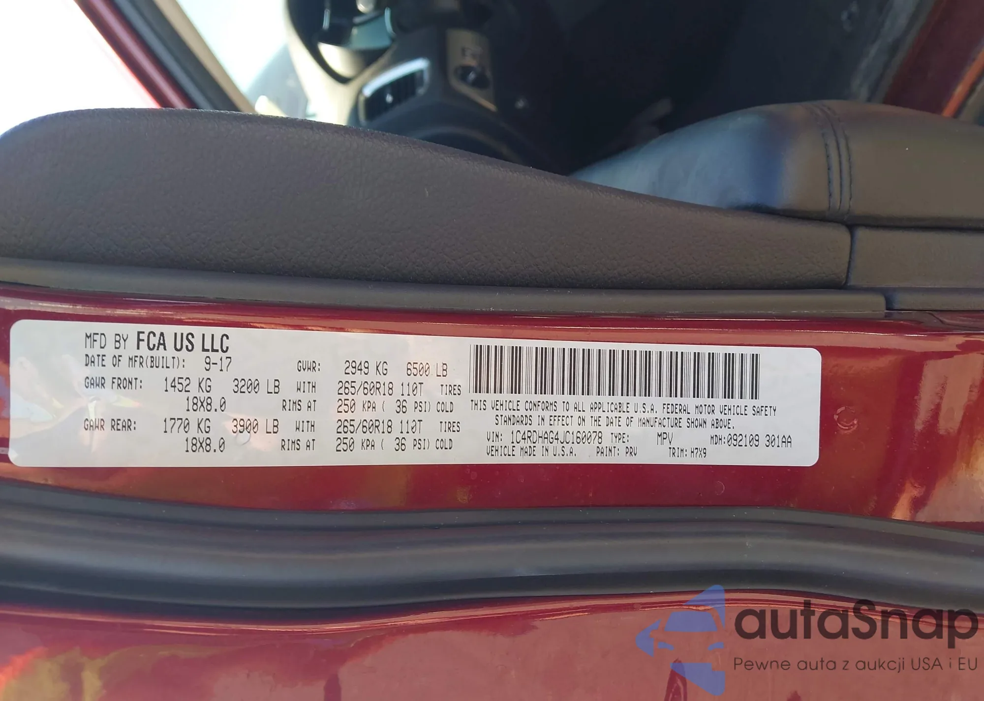 • VIN 1C4RDHAG4JC160078