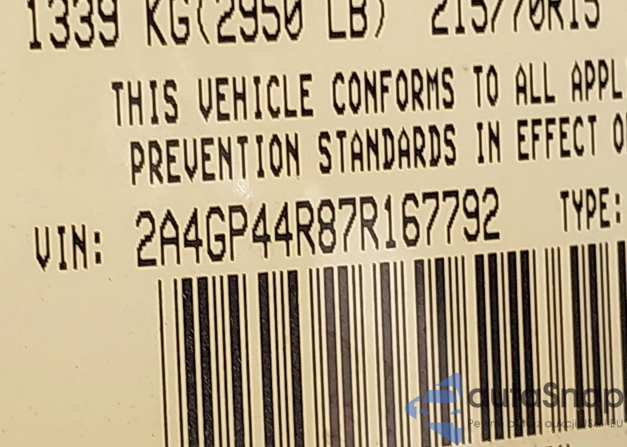 LOT: 43479368 VIN: 1HGCM56777A176018