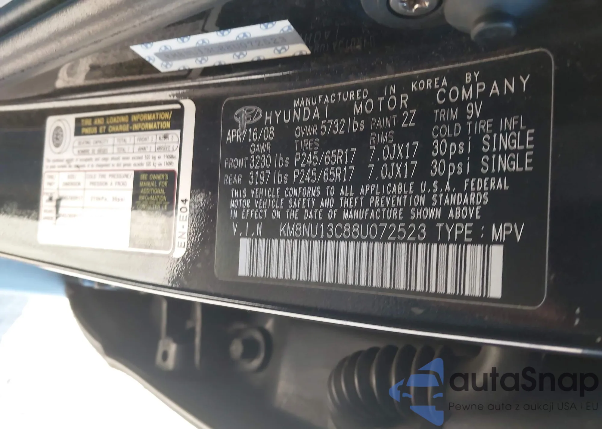 LOT: 43531282 VIN: KM8NU13C88U072523