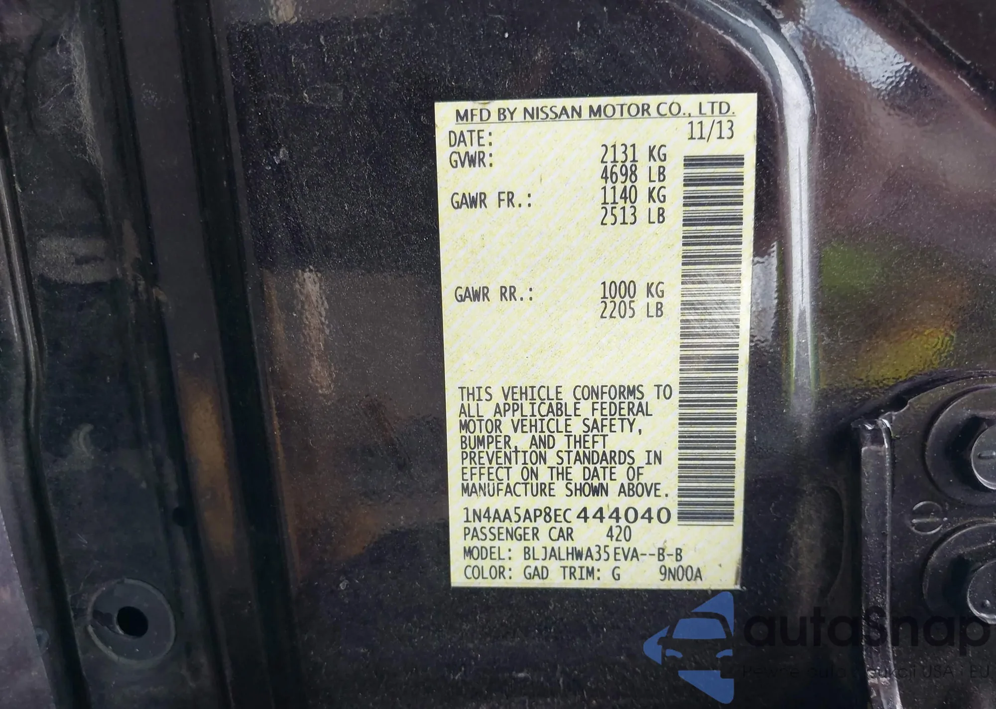 LOT: 42926297 VIN: 1N4AA5AP8EC444040