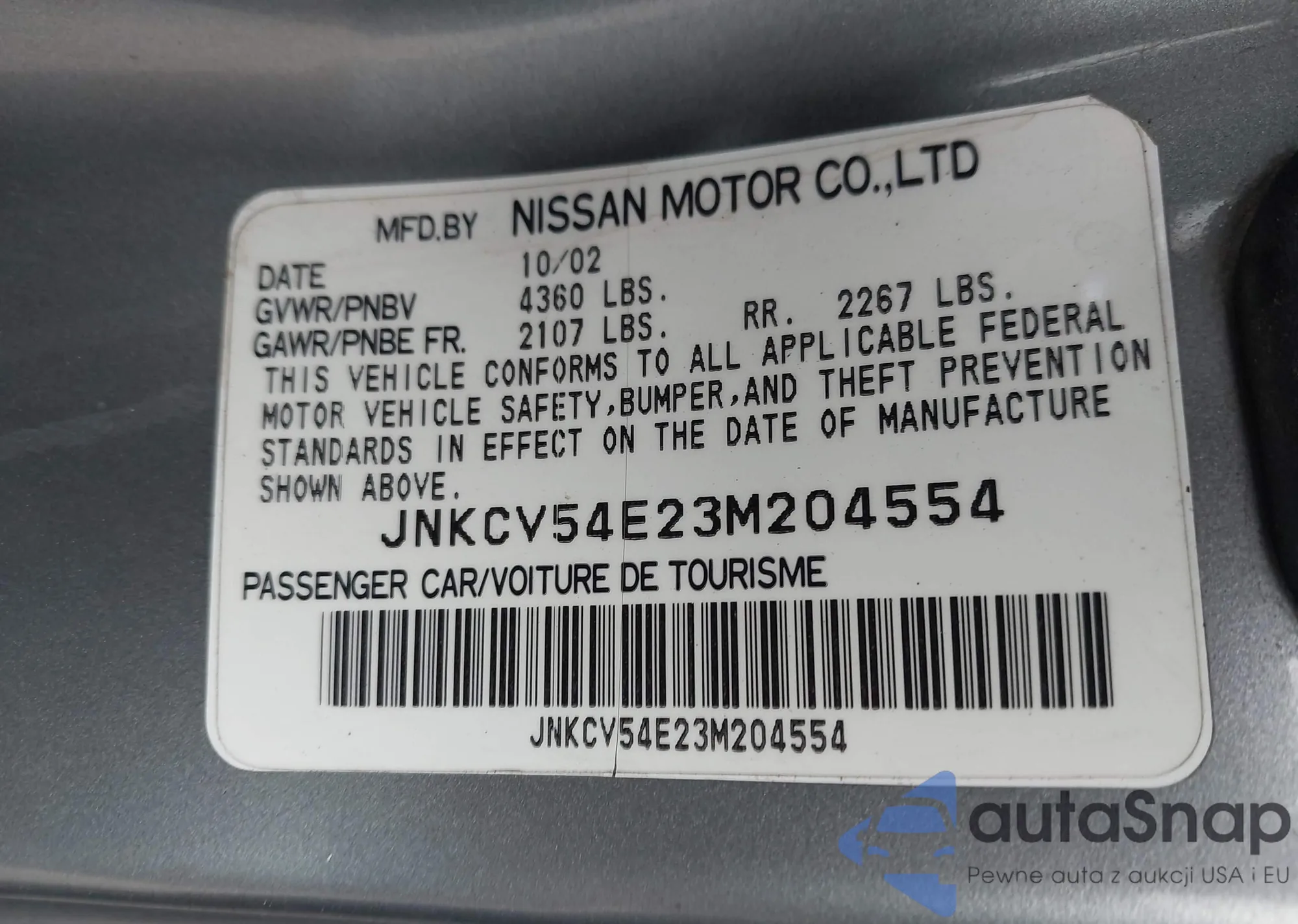 • VIN 1N4AL3AP2DC907058