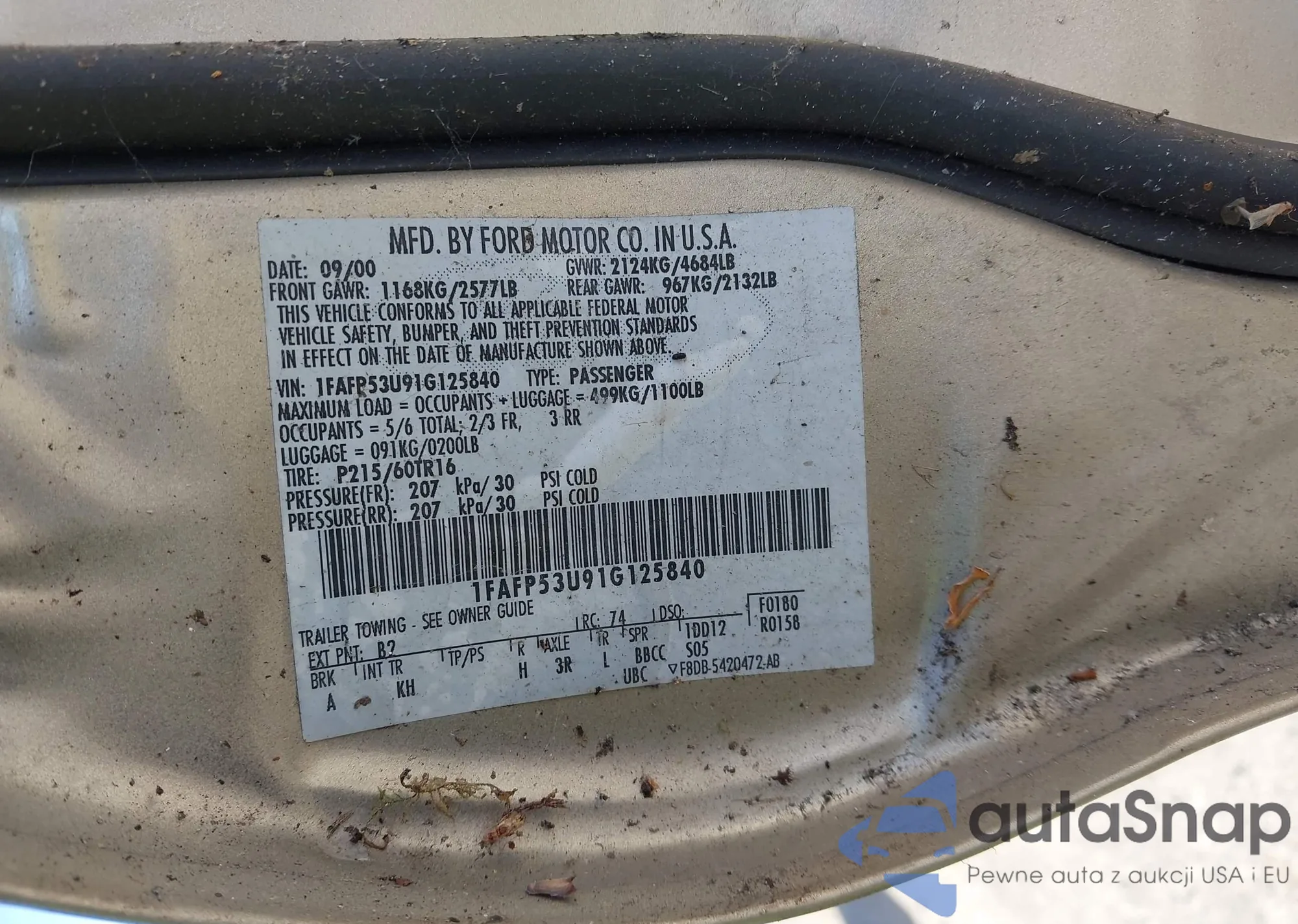 LOT: 43458792 VIN: 1FAFP53U91G125840