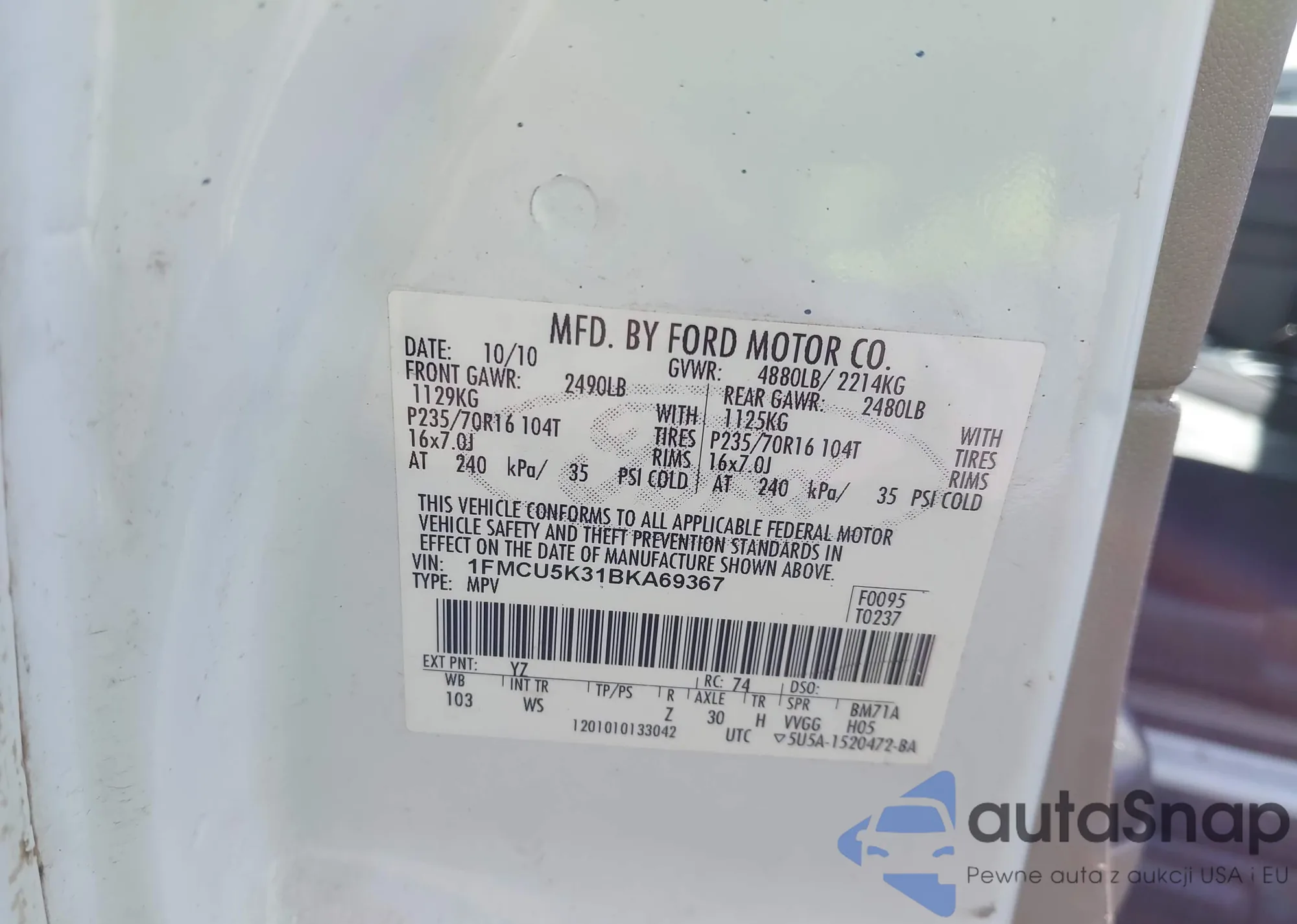 LOT: 43475109 VIN: 1FMCU9G9XGUC68532