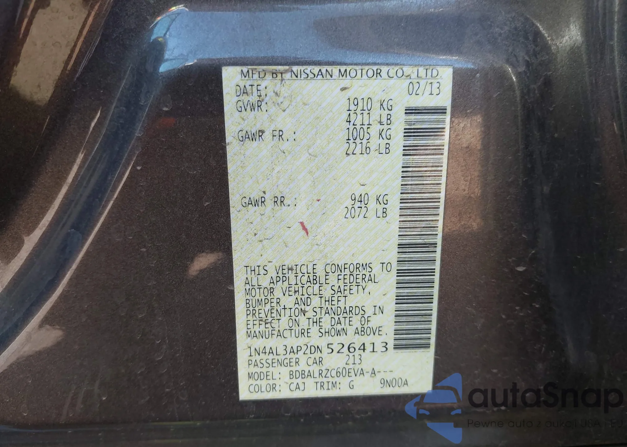 • VIN 1C4RJFBG8DC556272