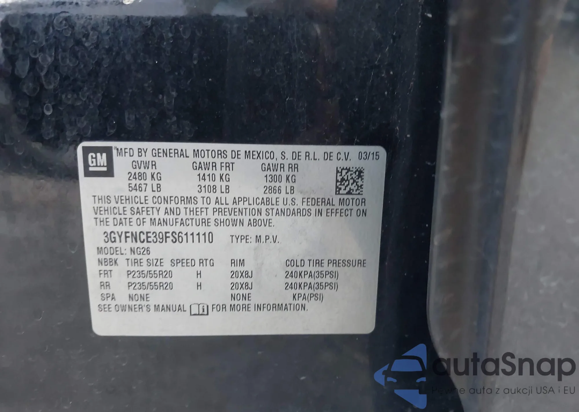 LOT: 43363270 VIN: 1GCWGFCF6F1246210