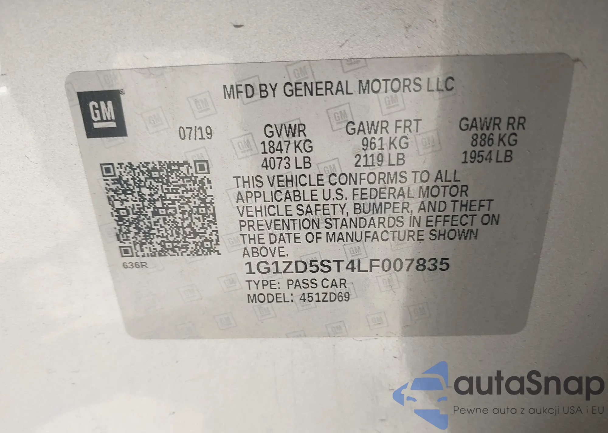 LOT: 43354078 VIN: 1G1ZD5ST4LF007835