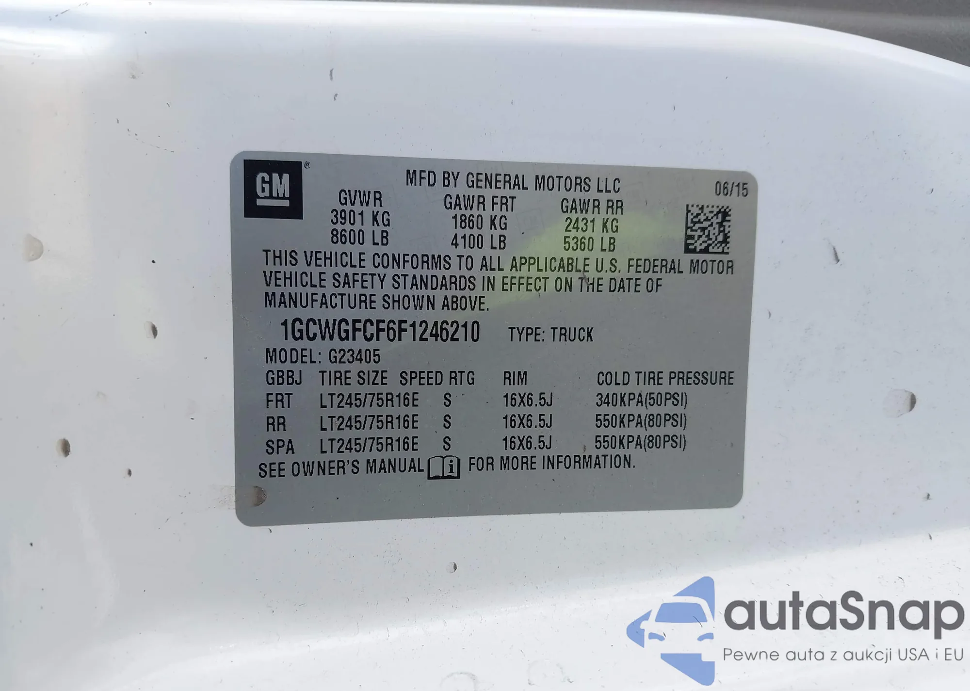 • VIN 1GCWGFCF6F1246210