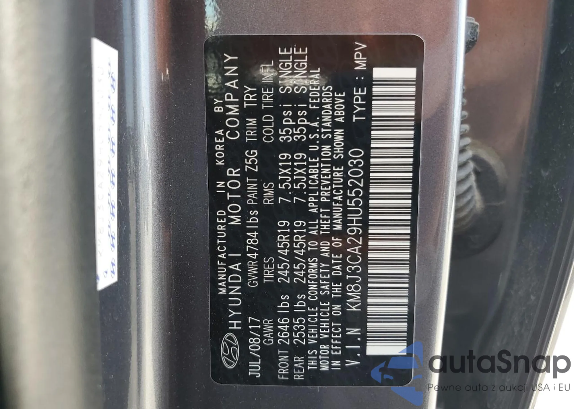 • VIN 5XXGM4A71DG227014