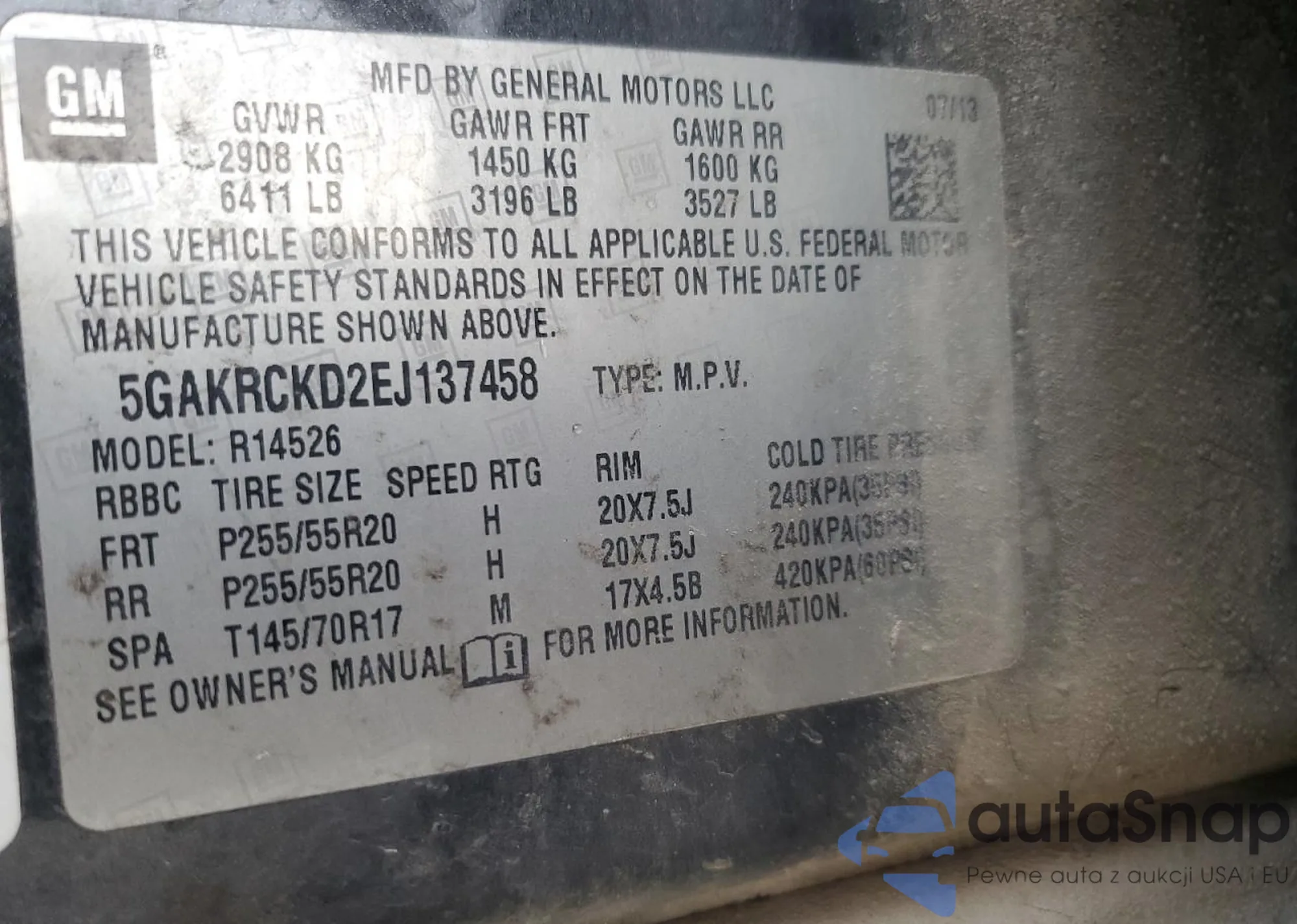 • VIN 5GAKRCKD2EJ137458