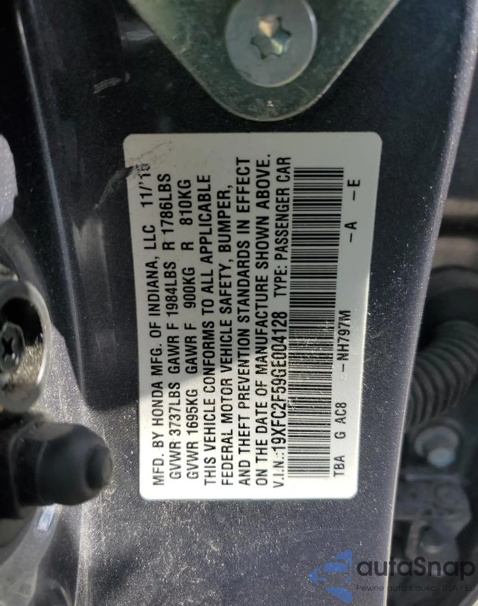 LOT: 82372055 VIN: 1HGCP2F37AA103922