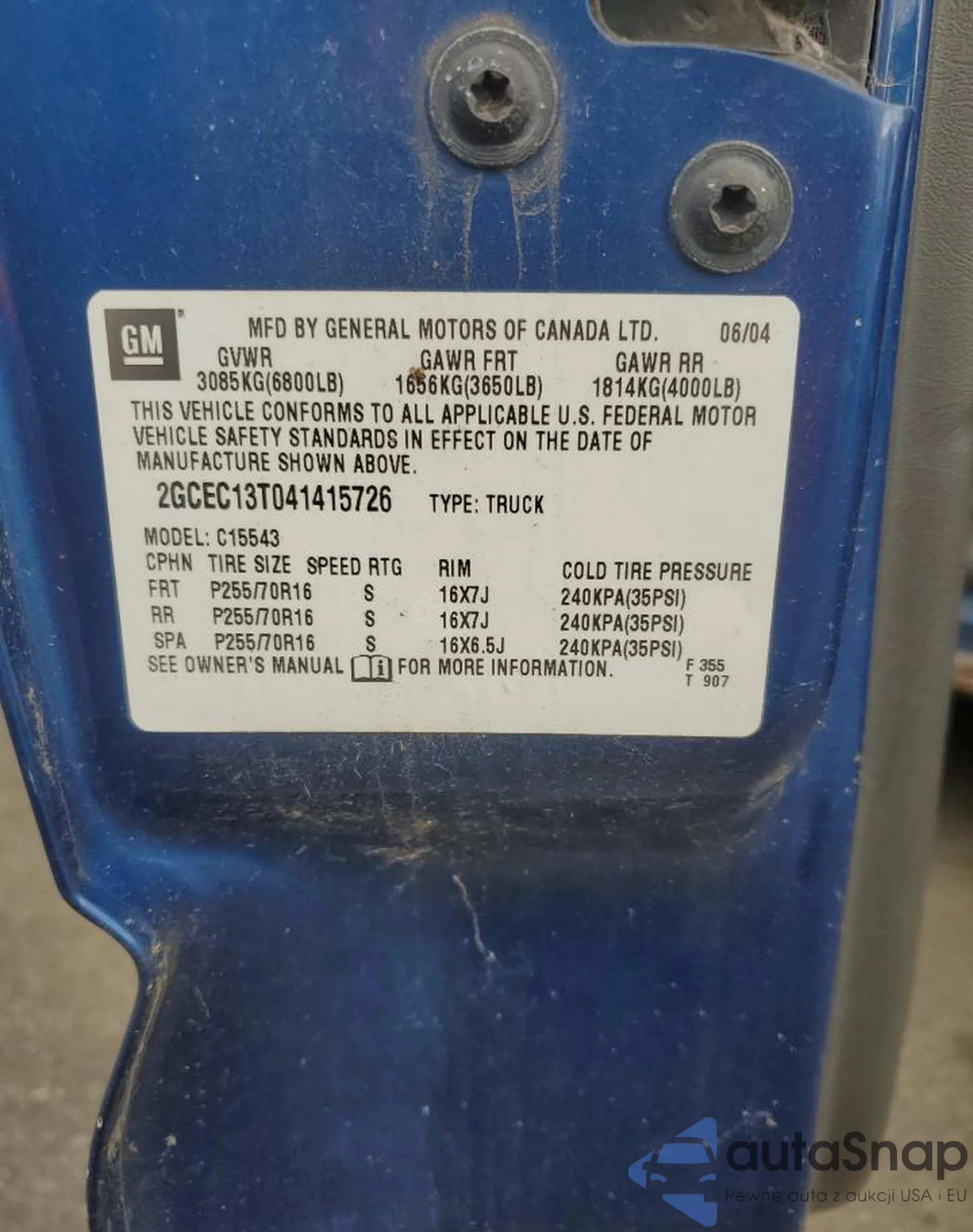 • VIN 2GCEC13T041415726