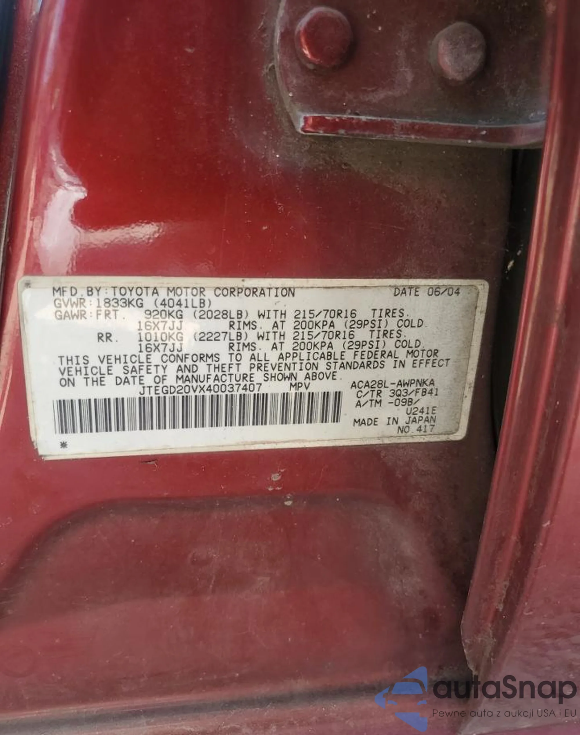 • VIN JTJBM7FXXB5020804