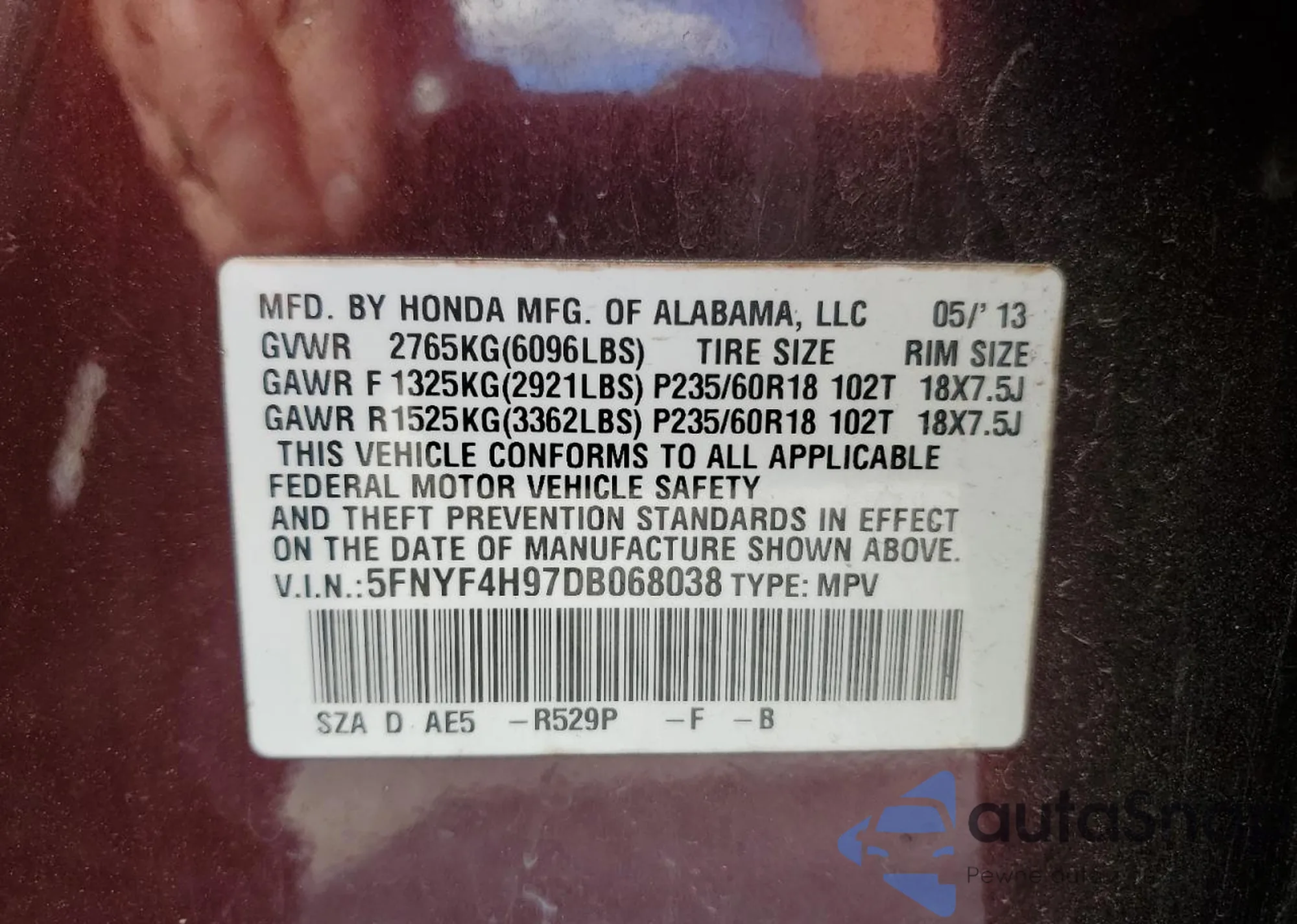 • VIN 2HKRM4H78FH622782