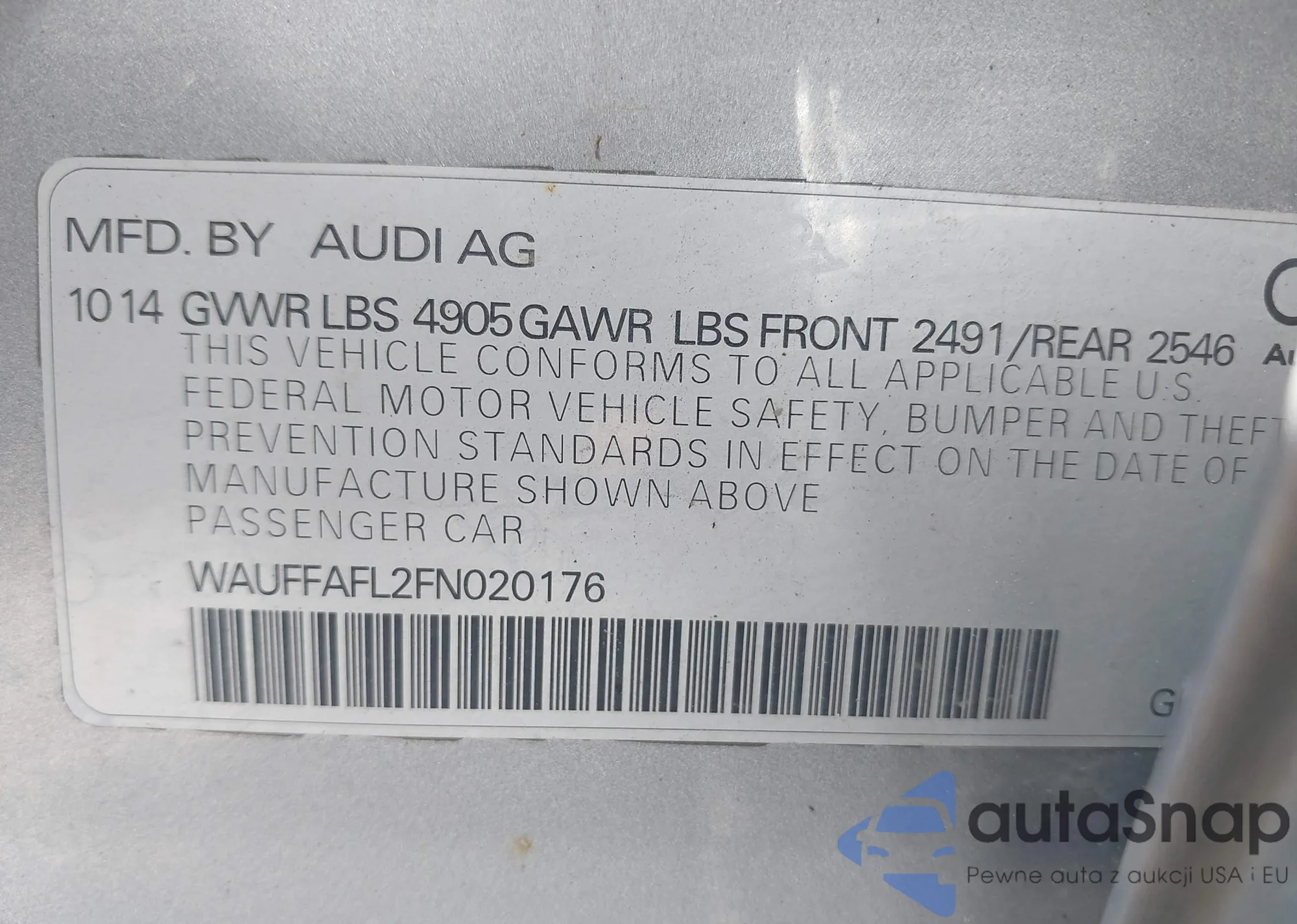 • VIN WAUFFAFL2FN020176