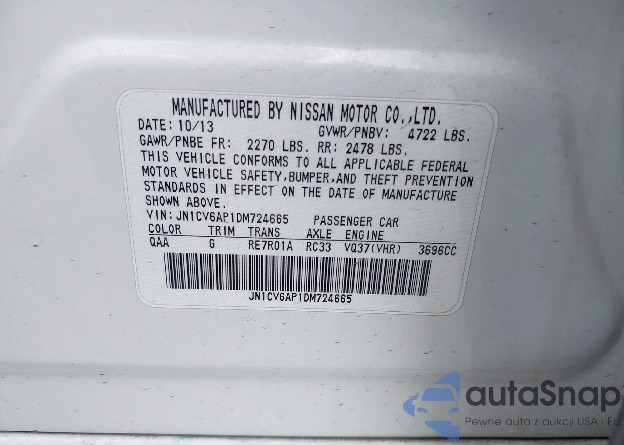 LOT: 42744495 VIN: 4T1BF1FK3HU298260