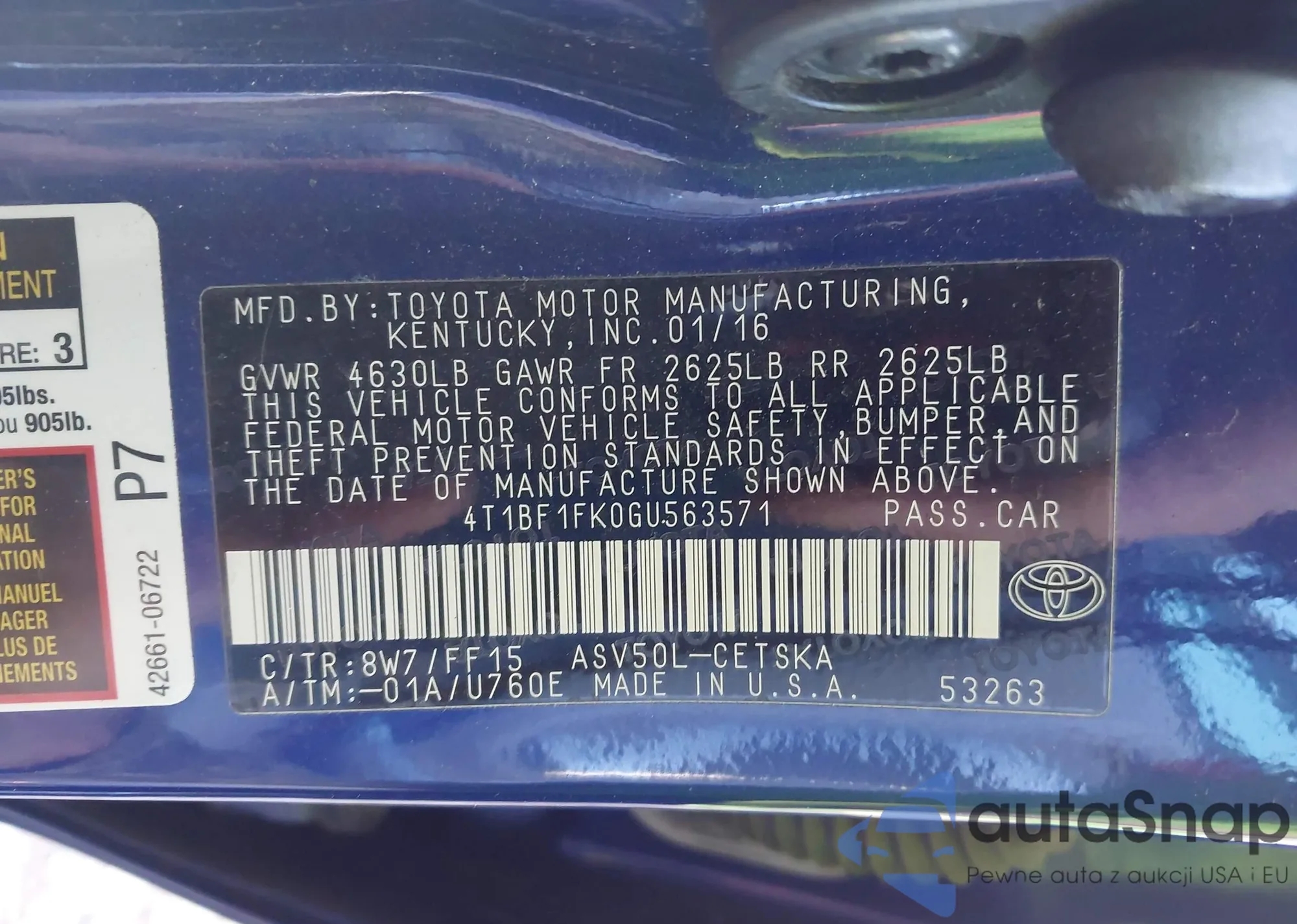 • VIN 4T1BF1FK3HU298260