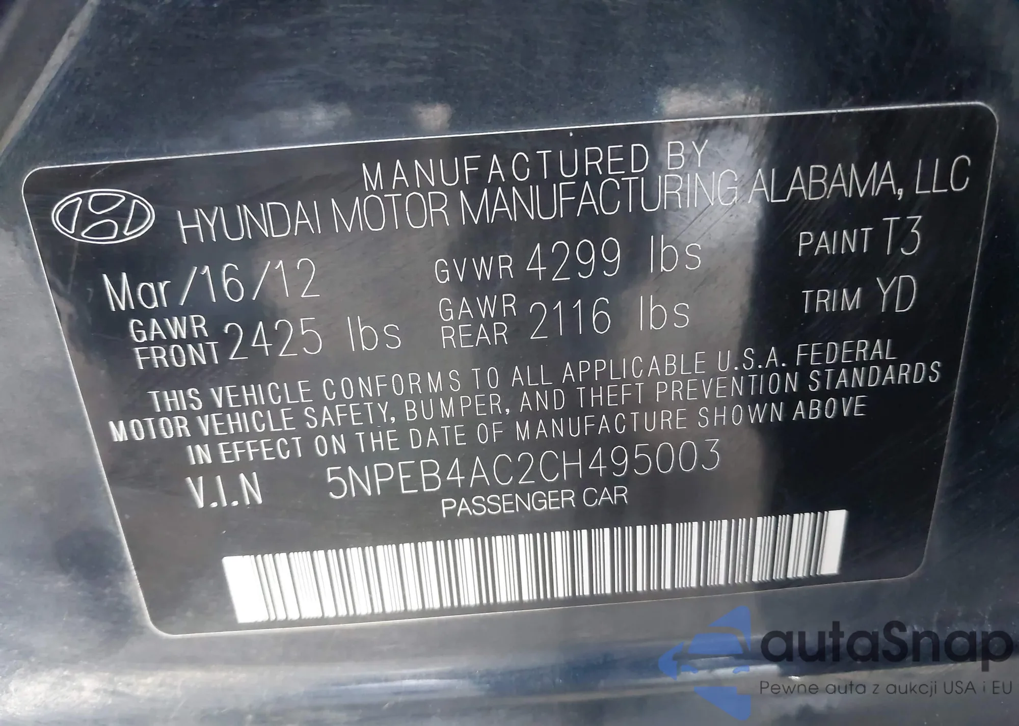 • VIN 5NPEB4AC2CH495003