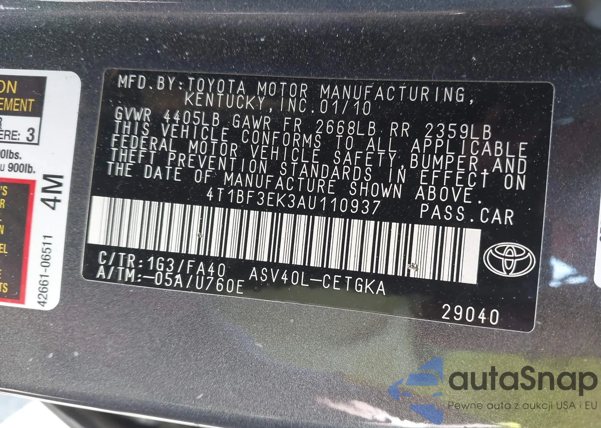 • VIN 4T1BF3EK3AU110937