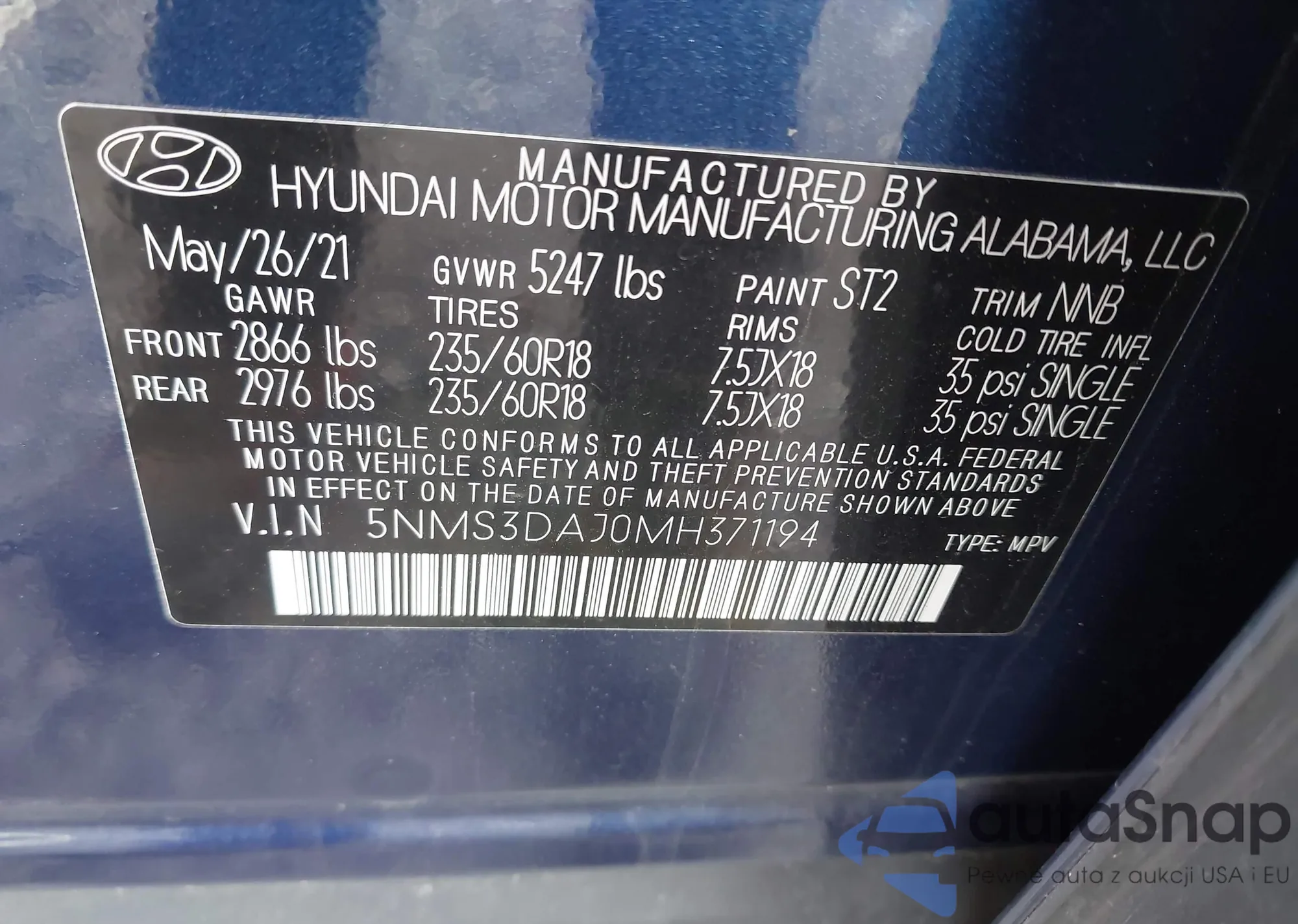 • VIN 4T3MWRFV7NU072775