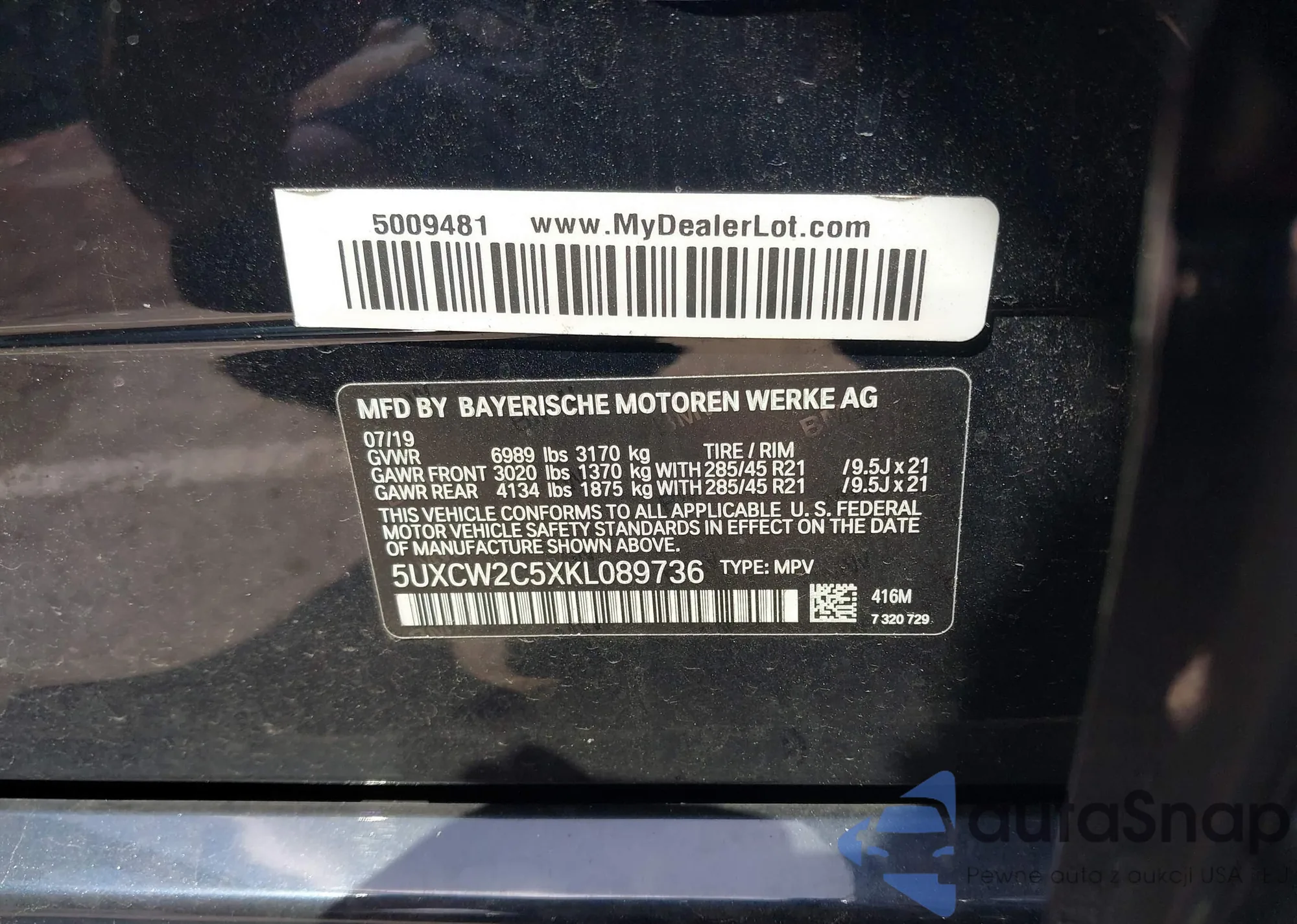 LOT: 42841848 VIN: 5UXCW2C5XKL089736